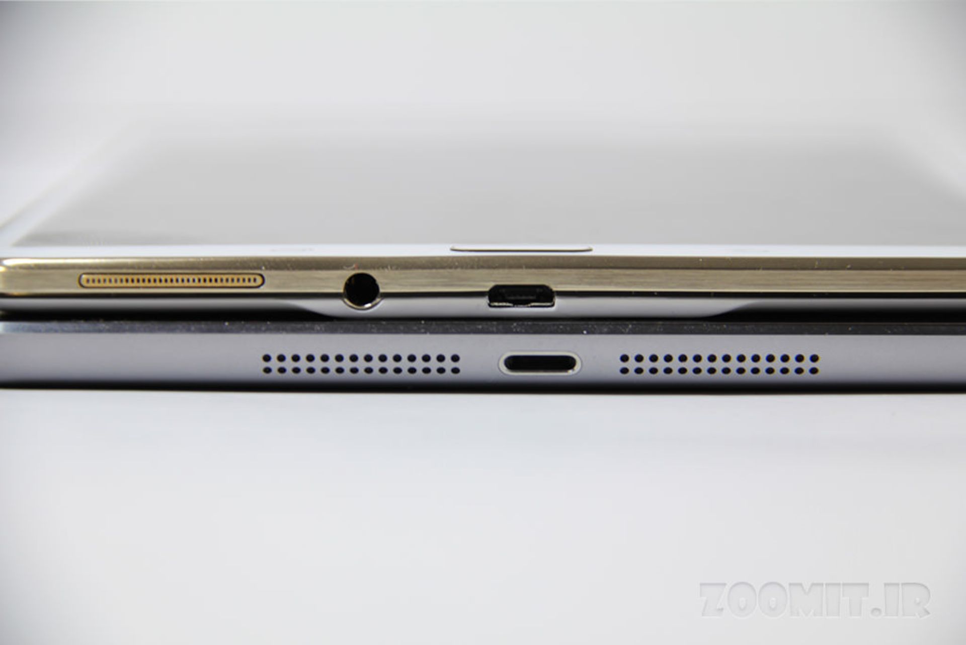در نسخه ۸.۴ اینچی دکمه پاور، کم و زیاد کردن صدا، فرستنده اینفرارد و پورت میکرو SD در لبه راست و دو اسپیکر هم در قسمت بالا و پایین دیده میشوند. یک پورت میکرو USB و خروجی هدفون هم در لبه پایین جا داده شدهاند. اسپیکرها در تبلت ۱۰.۵ اینچی در لبه راست و چپ جا گرفتند و دکمههای حجم صدا و پاور به همراه فرستنده اینفرارد در لبه بالایی قرار دارند. جای اسپیکرها در هر دو مدل تبلت ۸.۴ اینچی و ۱۰.۵ اینچی طوری در نظر گرفته شده که دست روی آنها را نپوشاند و صدا به خوبی پخش شود.
