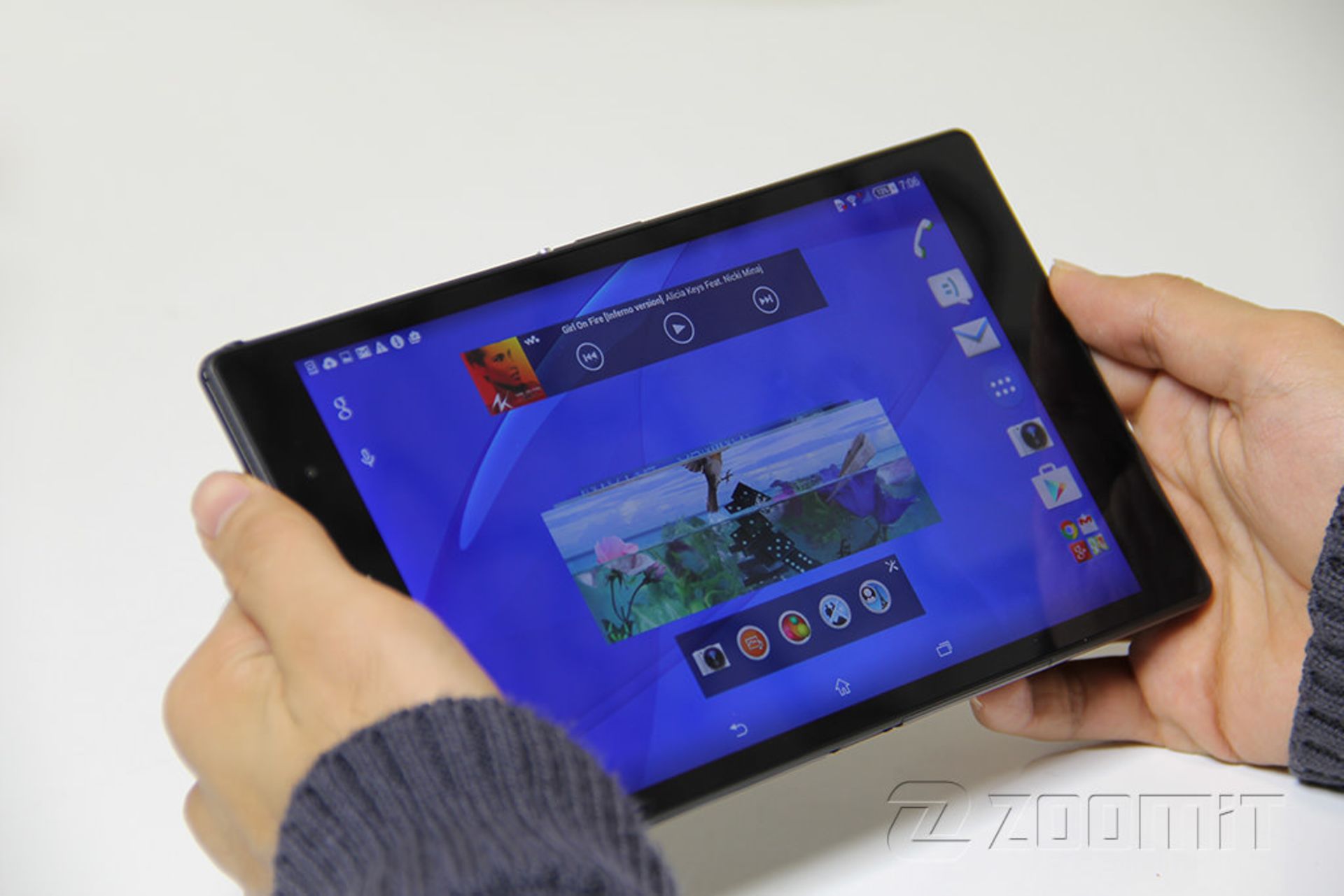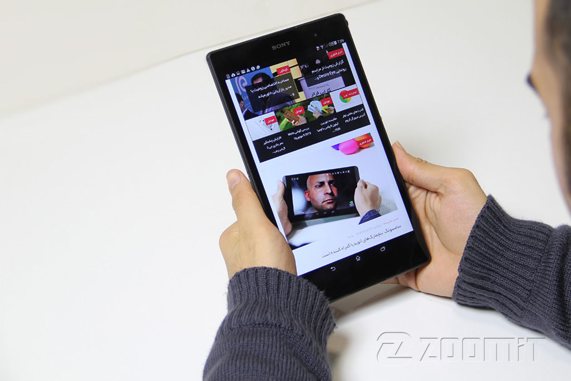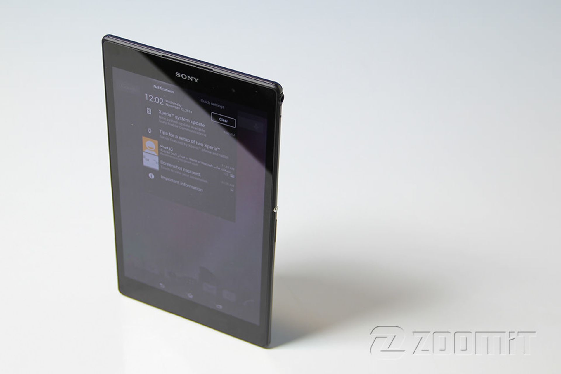 در هر حال، این تبلت به اندازه رقبای خود (برای مثال آیپد مینی) حس یک دستگاه کاملا ردهبالا را القا نمیکند، اما کیفیت ساخت تبلت در سطح قابل قبولی قرار دارد و پوشش پلاستیکی پشت دستگاه نیز به نظرمقاوم میرسد. اما در این شکی نیست که اگر سونی از پوشش شیشهای که در اکسپریا زد ۳ شاهد آن بودیم در تبلت ۸ اینچی خود نیز استفاده میکرد، نهتنها بر دوام دستگاه افزوده میشد، بلکه طراحی ظاهری و حسی که به کاربر منتقل میشد نیز بهبود مییافت.