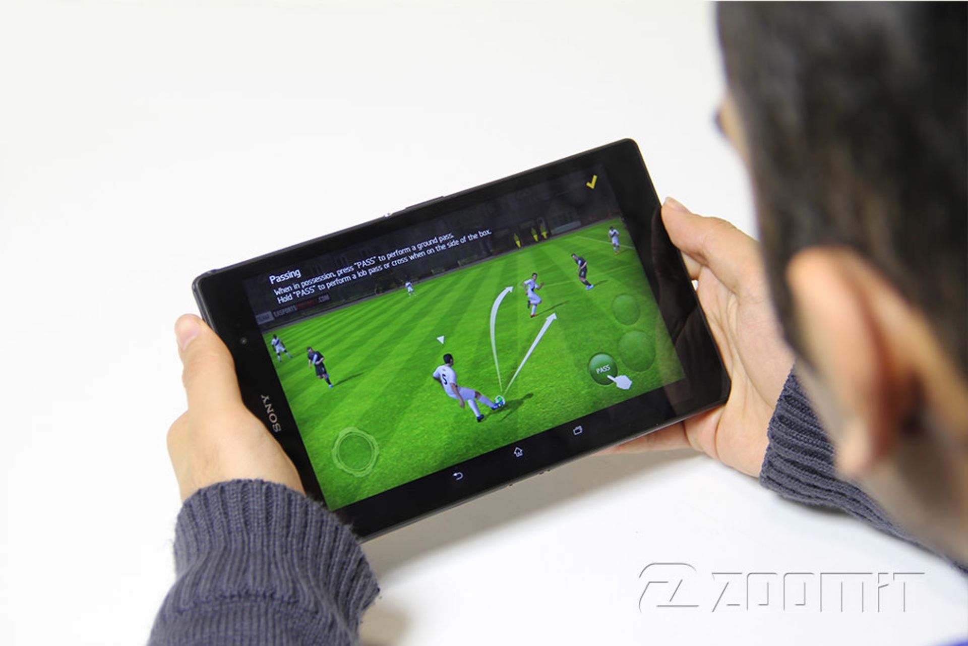 استفاده از Remote Play برای انجام بازیهای پلیاستیشن 4 روی تبلت ۸ اینچی زد ۳ کامپکت بسیار لذت بخش است. بیشترین فاصلهای که میتوانید از کنسول خود در حالت ریموت پلی داشته باشید، بین ۲۰ تا ۳۰ متر است و در این فاصله میتوانید بهراحتی و بدون هیچگونه افت کیفیت و سرعتی، از تبلت خود بهعنوان صفحهنمایش پلیاستیشن 4 استفاده کنید. به غیر از این کار، شما میتوانید با یک اینترنت قوی که حداقل سرعتی معادل ۷ مگابایت بر ثانیه داشته باشد، از راه دور به پلیاستیشن 4 خود متصل شده و به بازی بپردازید که فکر نکنیم این مورد دوم در کشور ما باتوجهبه سرعت پایین شبکه اینترنت مورد استفاده قرار بگیرد. سونی برای راحتی هرچه تمامتر کاربر برای استفاده از ریموت پلی، پایهای بهنام GCM 10 را بهصورت جداگانه به بازار عرضه کرده است که به وسیلهی آن میتوانید تبلت یا گوشی خود را روی کنترلر پلیاستیشن سوار کنید و به مانند یک کنسول دستی به بازی بپردازید. درست اینجا است که وزن سبک بدنه و کیفیت بالای نمایشگر تبلت، کاربر را مجاب میکند تا ساعتها به بازی کردن پلیاستیشن 4 روی تبلت خود مشغول شود.