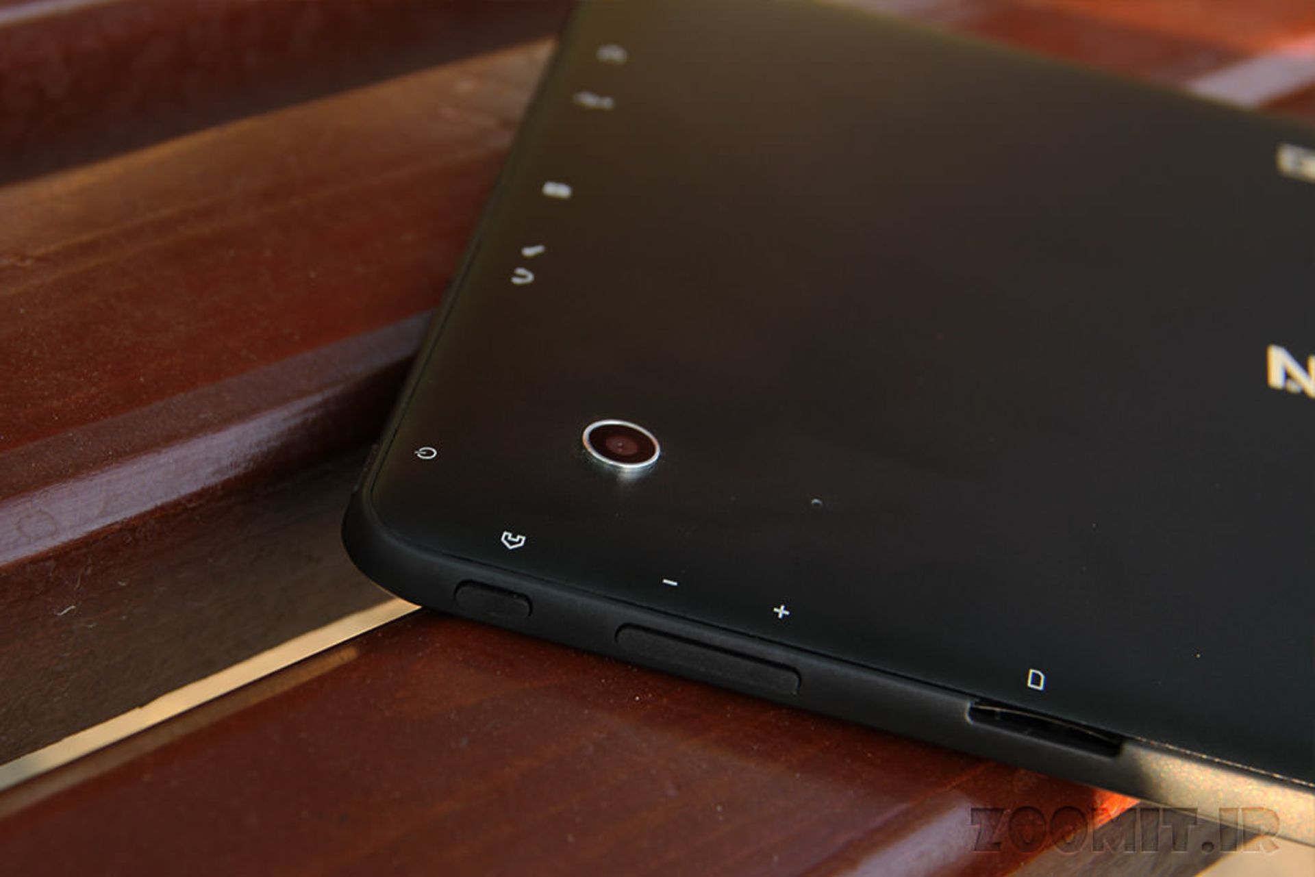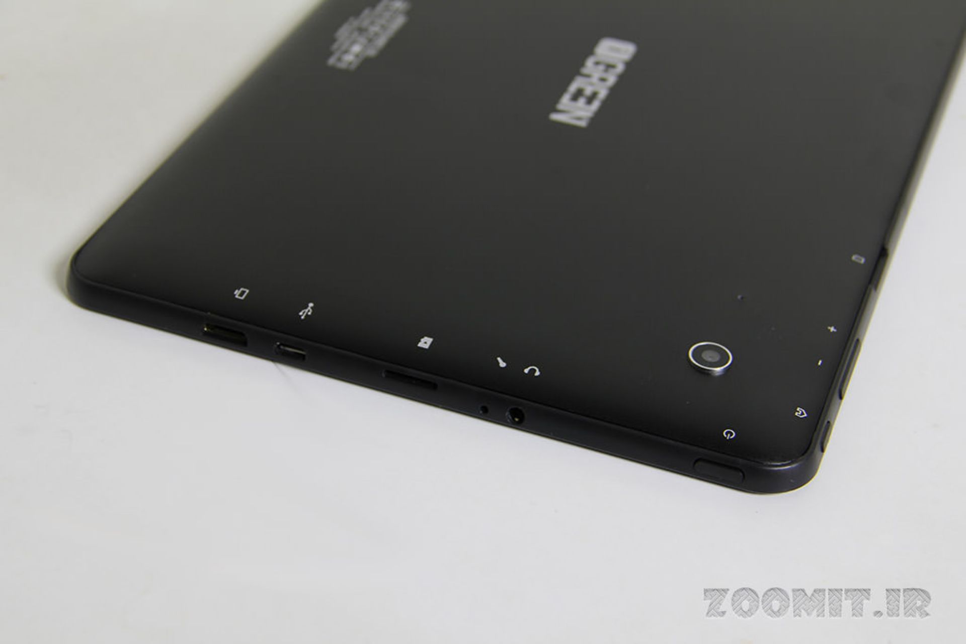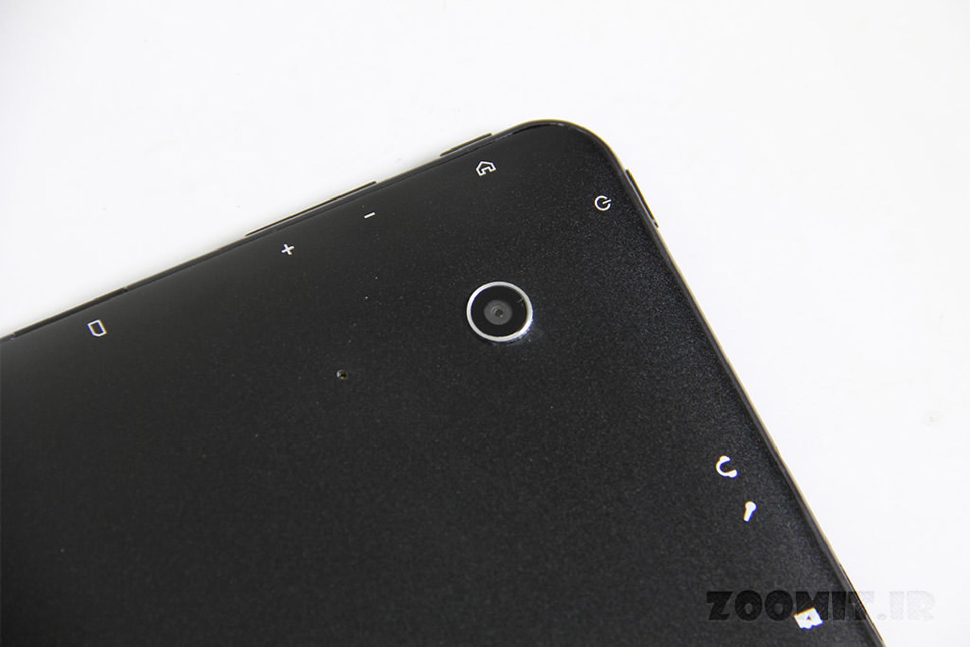 در لبهی پشت دستگاه نیز دریچه مربوط به دوربین 5 مگاپیکسلی به همراه یک میکروفون داخلی دیگر وجود دارد که احتمالا نقش حذف کننده نویز صدا در هنگام مکالمه صوتی را ایفا خواهد کرد. دوربین این تبلت فاقد فلاش است. ظاهرا ضخامت ماژول دوربین کمی بیشتر از ضخامت بدنهی دستگاه است و به همین دلیل بخشی از لنز دوربین از بدنه بیرون زده و برجستگی ایجاد کرده است.