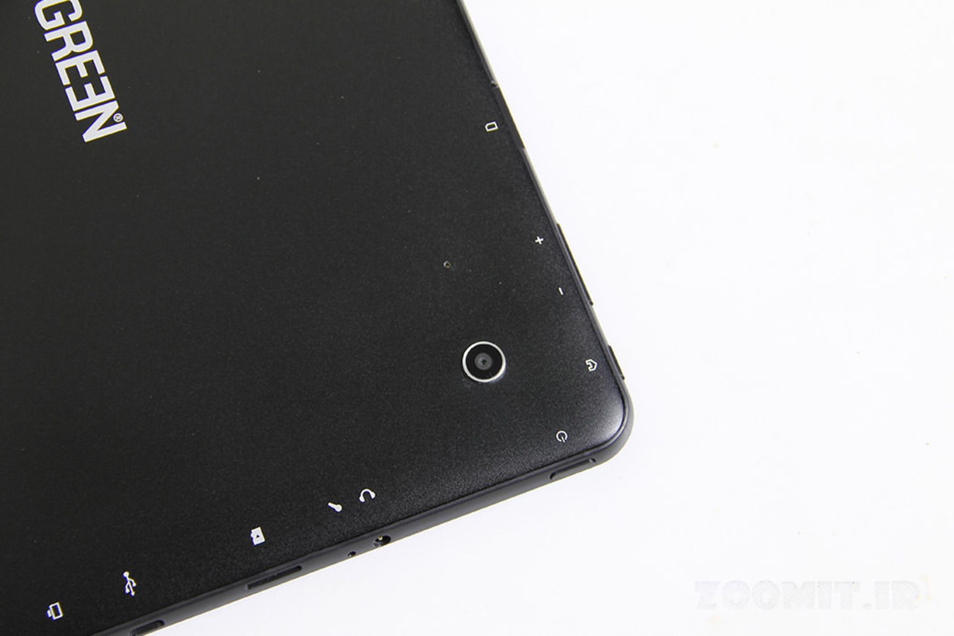 در لبه بالای دستگاه، دکمه Home، دکمه یک تکهی کم و زیاد کردن حجم صدا، درگاه میکرو سیم کارت جای گرفتهاند. جالب است بدانید که گرین یک دکمه فیزیکی شبیه به پاور را در لبهی بالای دستگاه قرار داده که با فشار دادن آن صفحه اصلی سیستم عامل اندروید نمایش داده میشود، این دکمه دقیقا همان کارایی دکمه لمسی Home در نوار پایین صفحه اندروید را دارد.