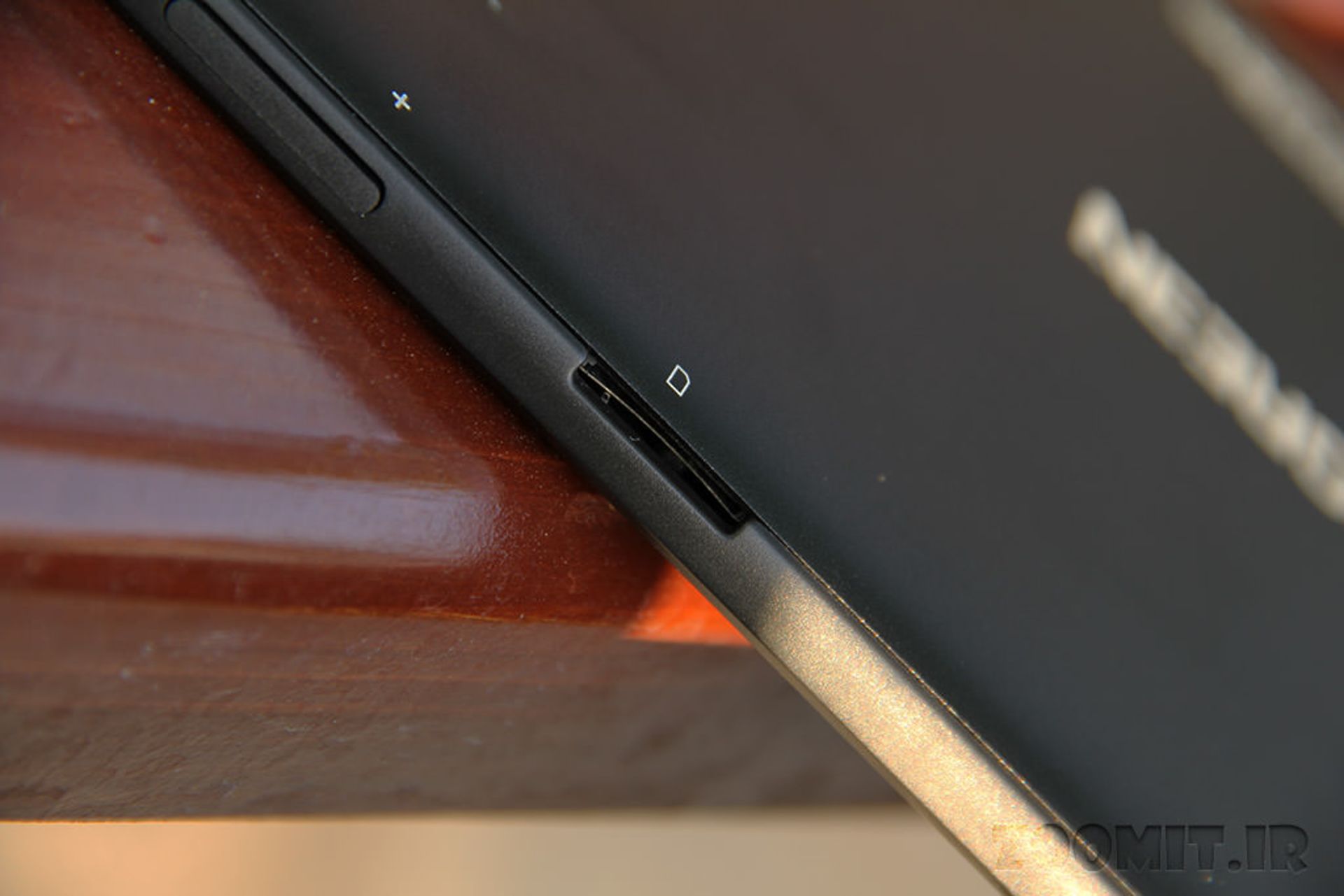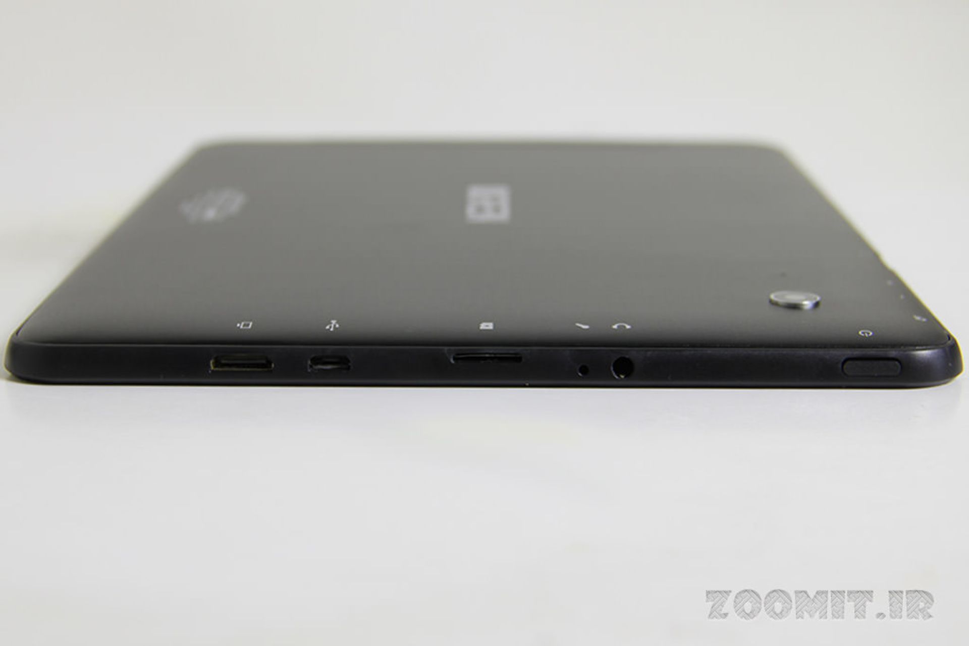 در لبهی چپ نیز دکمه پاور، جک 3.5 میلی متری خروجی صدا، دریچهی هدفون، درگاه کارت حافظهی SD، درگاه micro USB و خروجی mini HDMI وجود دارد.