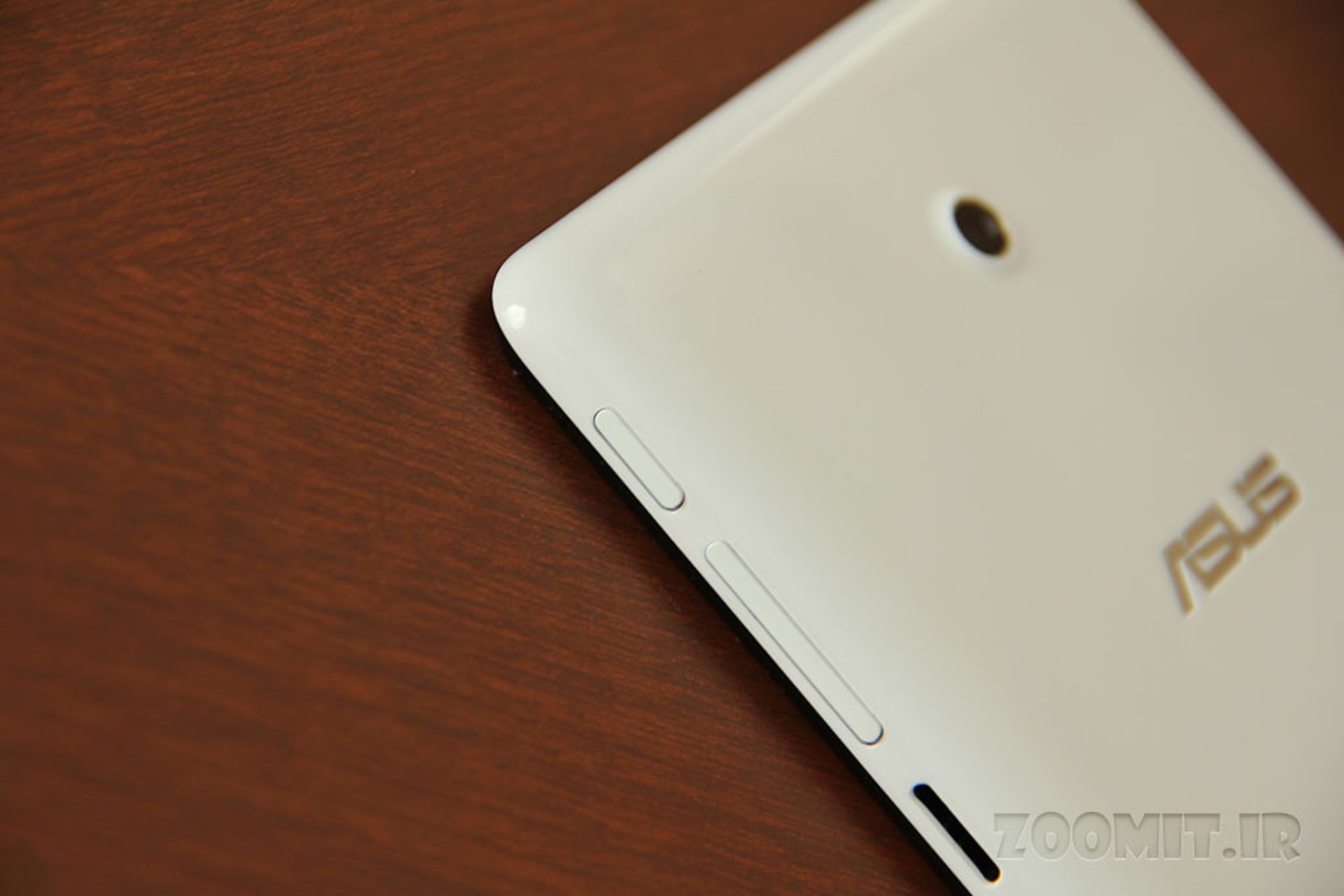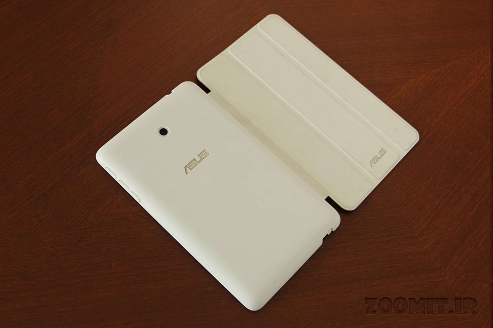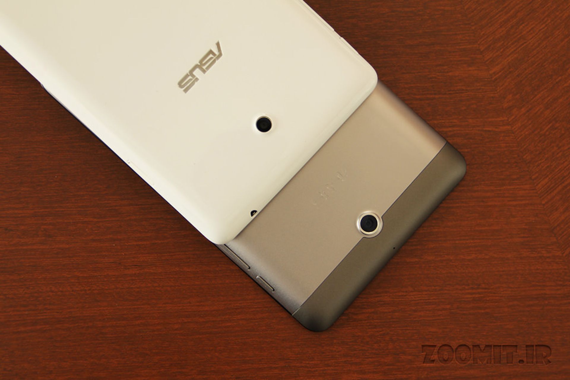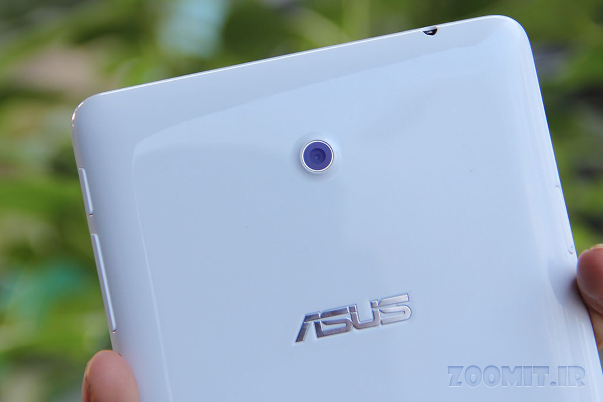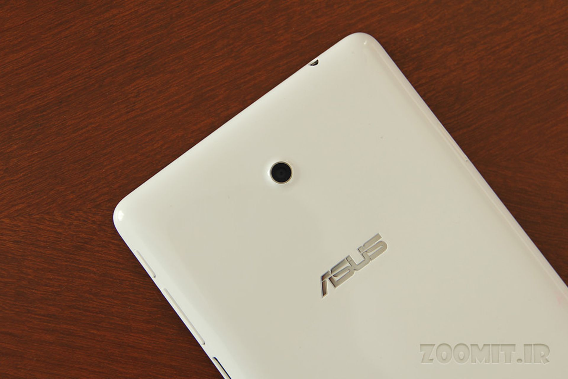 در نگاه اول بدنه پلاستیکی این تبلت شما را چندان مجذوب نمیکند. به نظر میرسد ایسوس برای آن که بتواند هم از سختافزار قدرتمندتری بهره ببرد و هم قیمت گوشی را به حداقل برساند، کیفیت بدنه را کاهش داده است. در قسمت پشت دستگاه شاهد یک بدنه تماما پلاستیکی هستیم که یک طرح اکلیلی مانند دارد. دوربین ۵ مگاپیکسلی بدون فلاش این تبلت در بالا قرار دارد و زیر آن آرم ایسوس قابل مشاهده است.