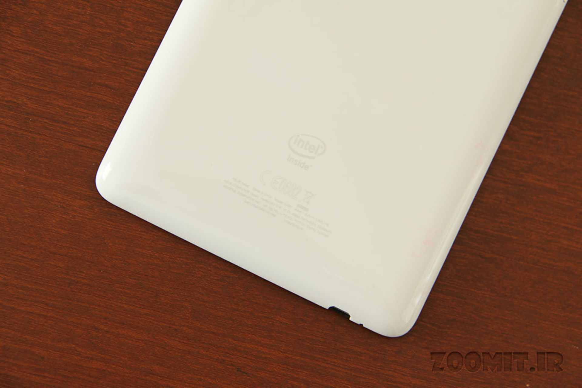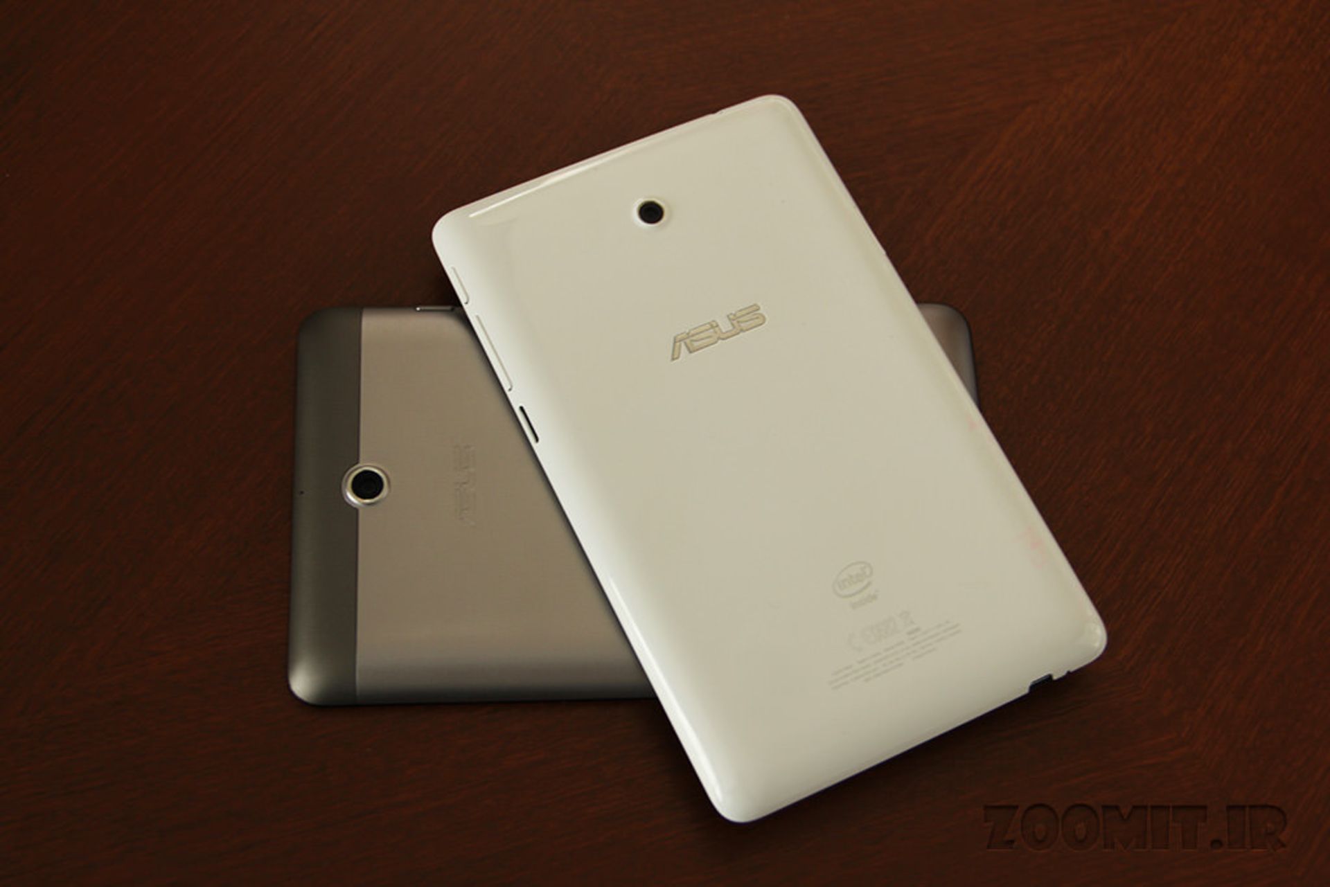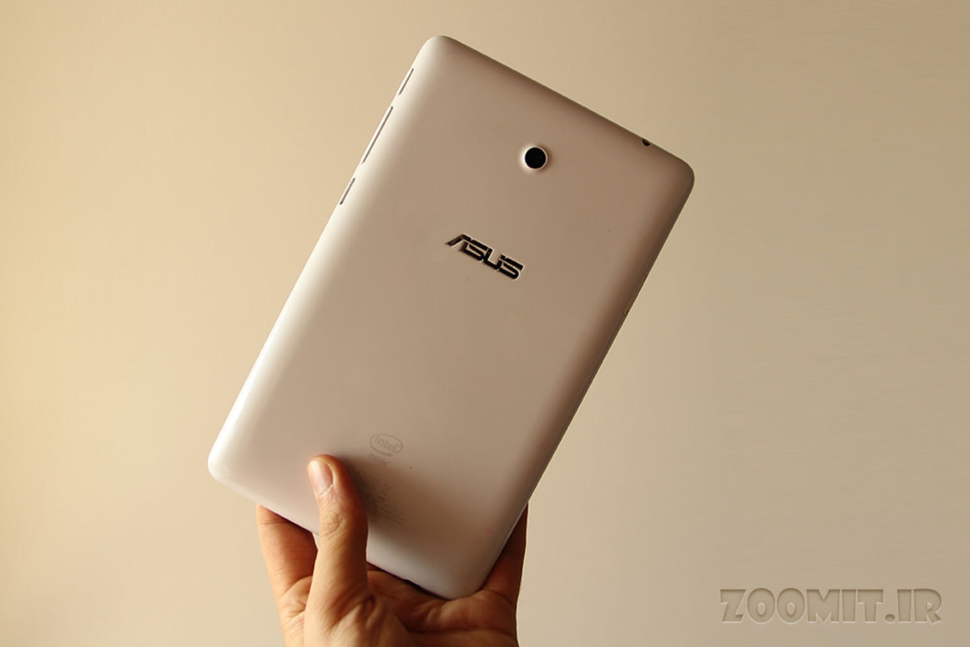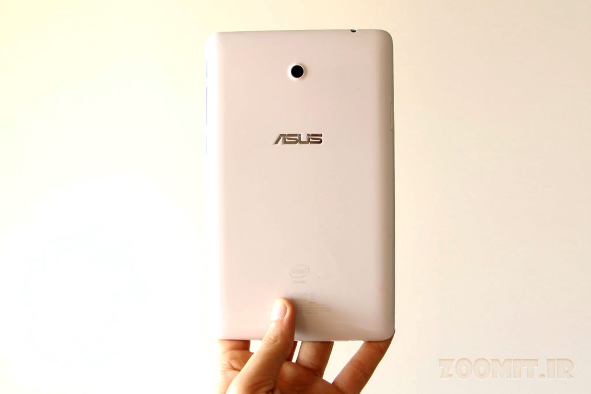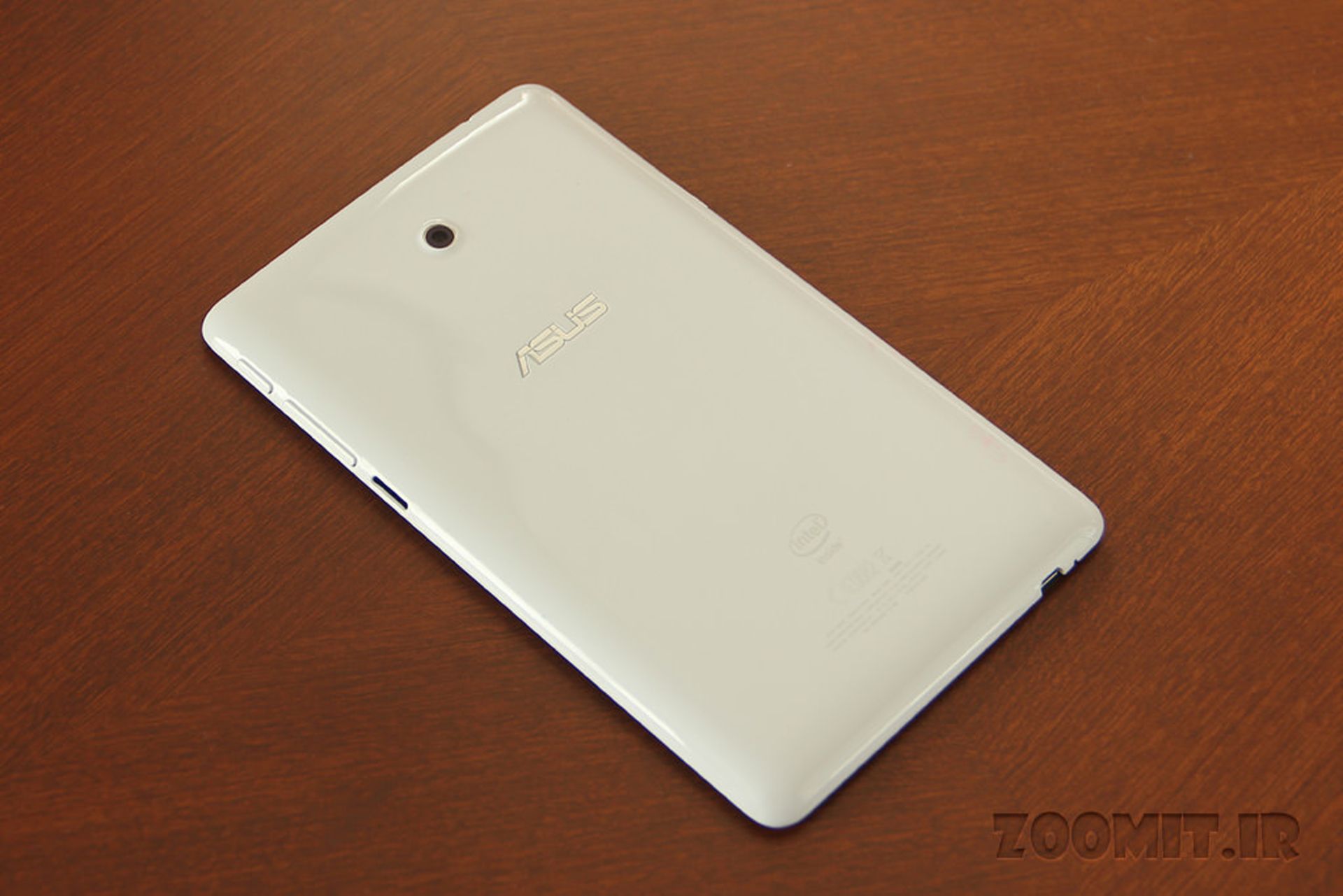 لنز دوربین یک برجستگی را در بدنه ایجاد کرده و به همین دلیل هنگامی که فونپد ۷ را روی سطحی صاف قرار میدهید، باید کمی مراقب باشید که جسم تیز و زبری در زیر آن نباشد. در قسمت پایین نیز میتوان آرم اینتل (سازنده پردازنده فونپد ۷) را مشاهده کرد. بدنه پشت از استحکام قابل قبولی در برابر ضربه برخوردار است و میتواند به خوبی از سختافزار داخلی تبلت محافظت کند، اما به نظر میرسد که در مقابل خط و خش و جای ضربه چندان مقاومتی از خود نشان ندهد. همچنین حالت صاف آن باعث میشود که تبلت در حالت استفاده با یک دست، لیز بخورد. در مجموع Fonepad 7 که حدود 10.5 میلی متر ضخامت و 340 گرم وزن دارد، ارگونومی مناسبی داشته و بدنه پلاستیکی آن نسبت به بدنه فلزی در نسل قبل، یک عقب گرد محسوب میشود.