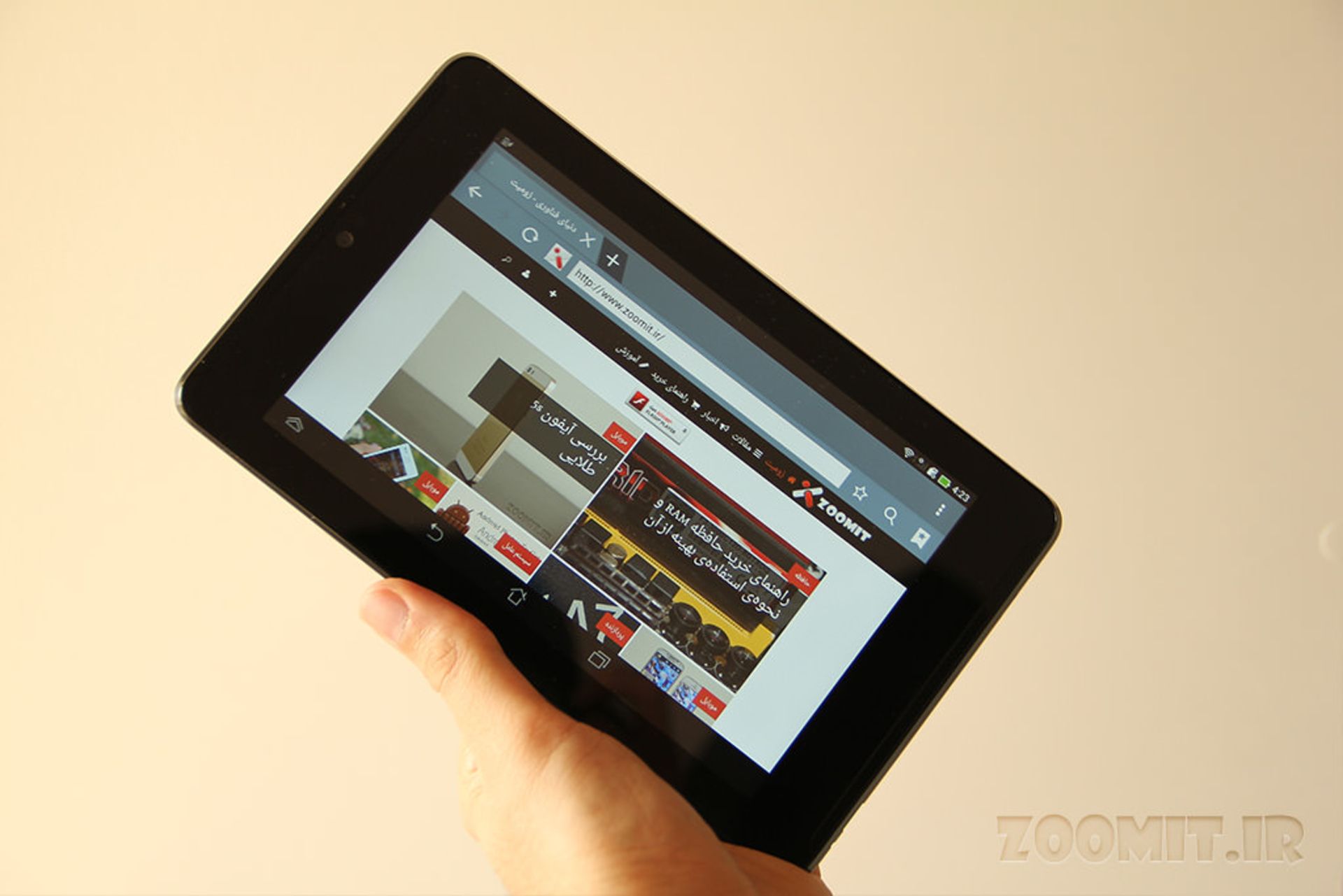 وبگردی و مطالعه روی این تبلت لذتبخش است و به دلیل استفاده از پنل IPS LCD چشمان شما در استفاده طولانی مدت از تبلت، آزار نمیبیند. وزن مناسب دستگاه نیز باعث میشود که در استفادههای طولانی مدت احساس خستگی نکنید و بتوانید به راحتی آن را در دست بگیرید. این تبلت به دلیل ابعاد مناسبی که دارد بسیار خوشدست است و ارگونومی مناسبی دارد.