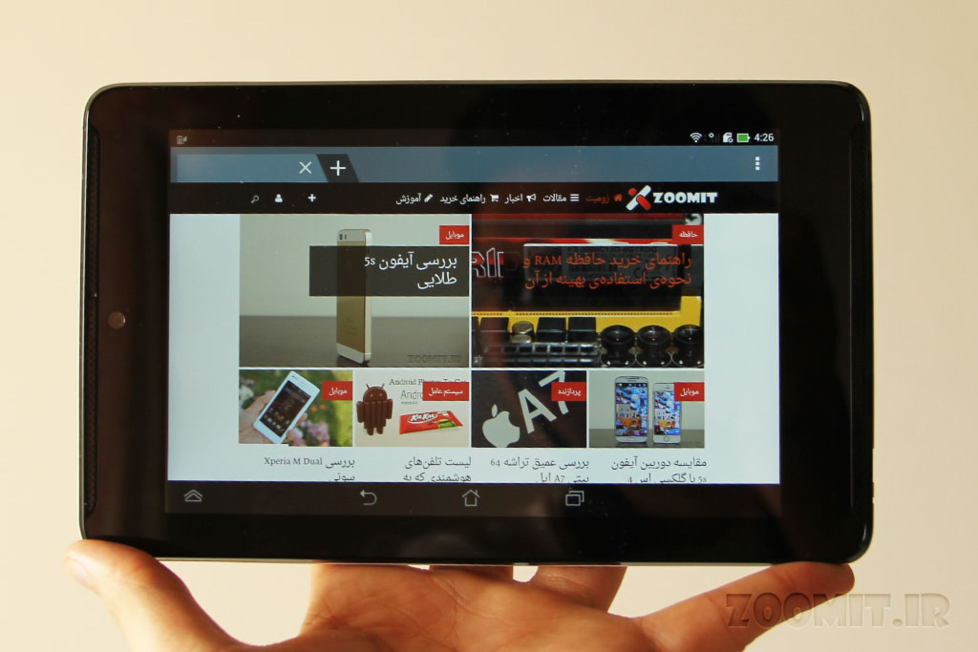 زاویه دید فونپد 7 جدید به لطف پنل IPS آن مطلوب است و برای استفاده عمومی مشکلی از این بابت وجود ندارد. در زوایای بسیار زیاد کمی کنتراست تصویر کاهش مییابد، اما برای مشاهده فیلم به صورت چند نفره هیچ نارسایی از سوی تبلت مشاهده نمیگردد.