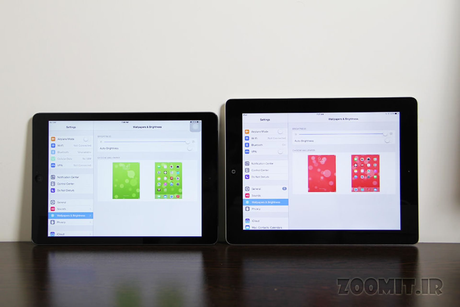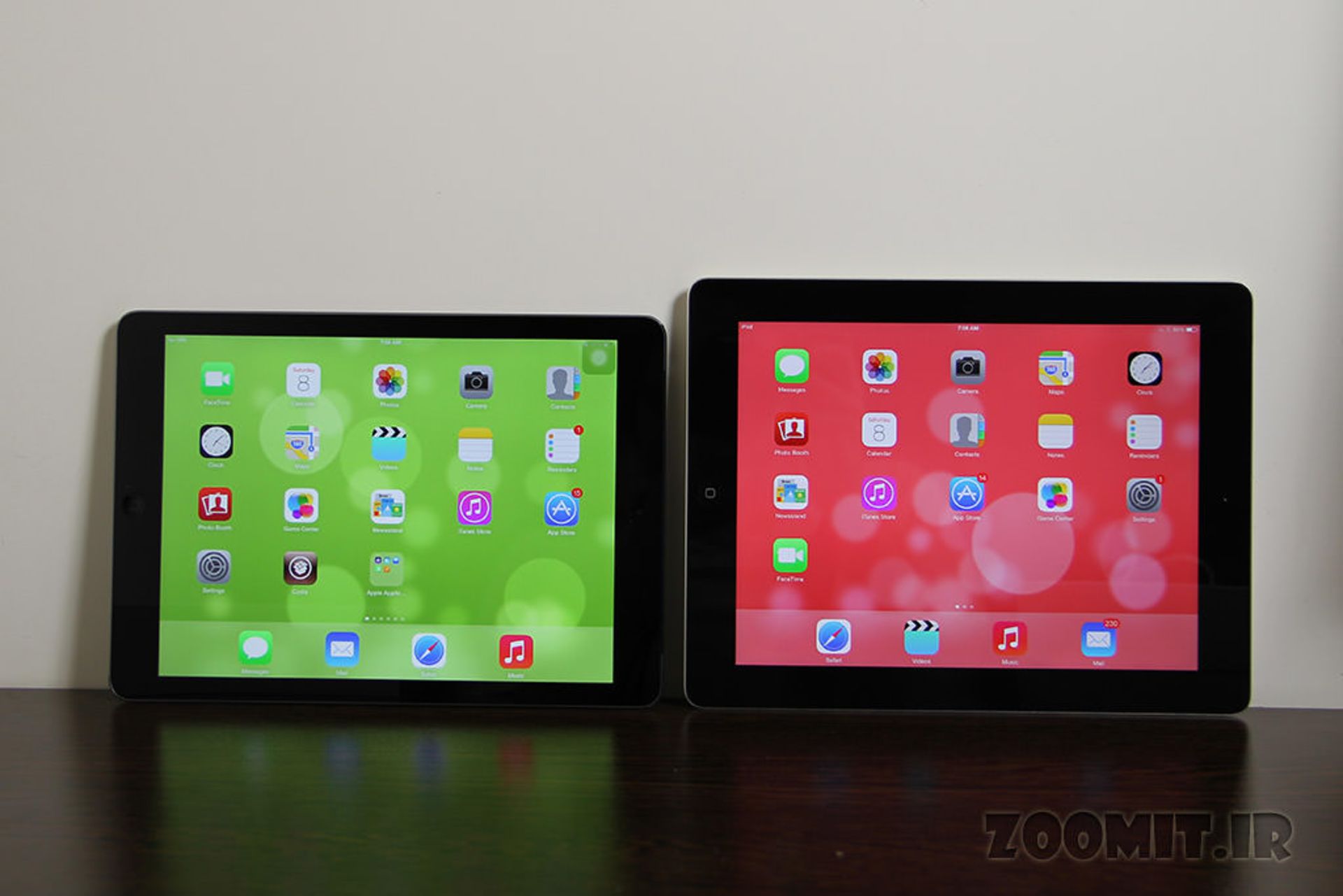 در زمان عرضه آیپد ایر، بسیاری بر این باور بودند که صفحهنمایش این تبلت نسبت به نسل قبل تغییر خاصی نکرده است؛ اما این صفحهنمایش حالا 23 درصد کمتر نور را منعکس میکند و حداکثر شدت روشنایی آن نیز 7 درصد بیشتر شده است. اما این همه ماجرا نیست! نسبت کنتراست تصویر در صفحهنمایش iPad Air نسبت به iPad 4 نزدیک به 32 درصد بهبود یافته و دقت نمایش رنگها نیز در آن ارتقا یافته است. اگر زومیت را دنبال کرده باشید حتما میدانید که صفحهنمایش آیپد ایر از نوع IGZO است؛ استفاده از فناوری IGZO همچنین باعث باریکتر شدن صفحهنمایش شده و از همه مهمتر مصرف انرژی در آن را نسبت به صفحهنمایش آیپد 4 تا 57 درصدکاهش داده است.