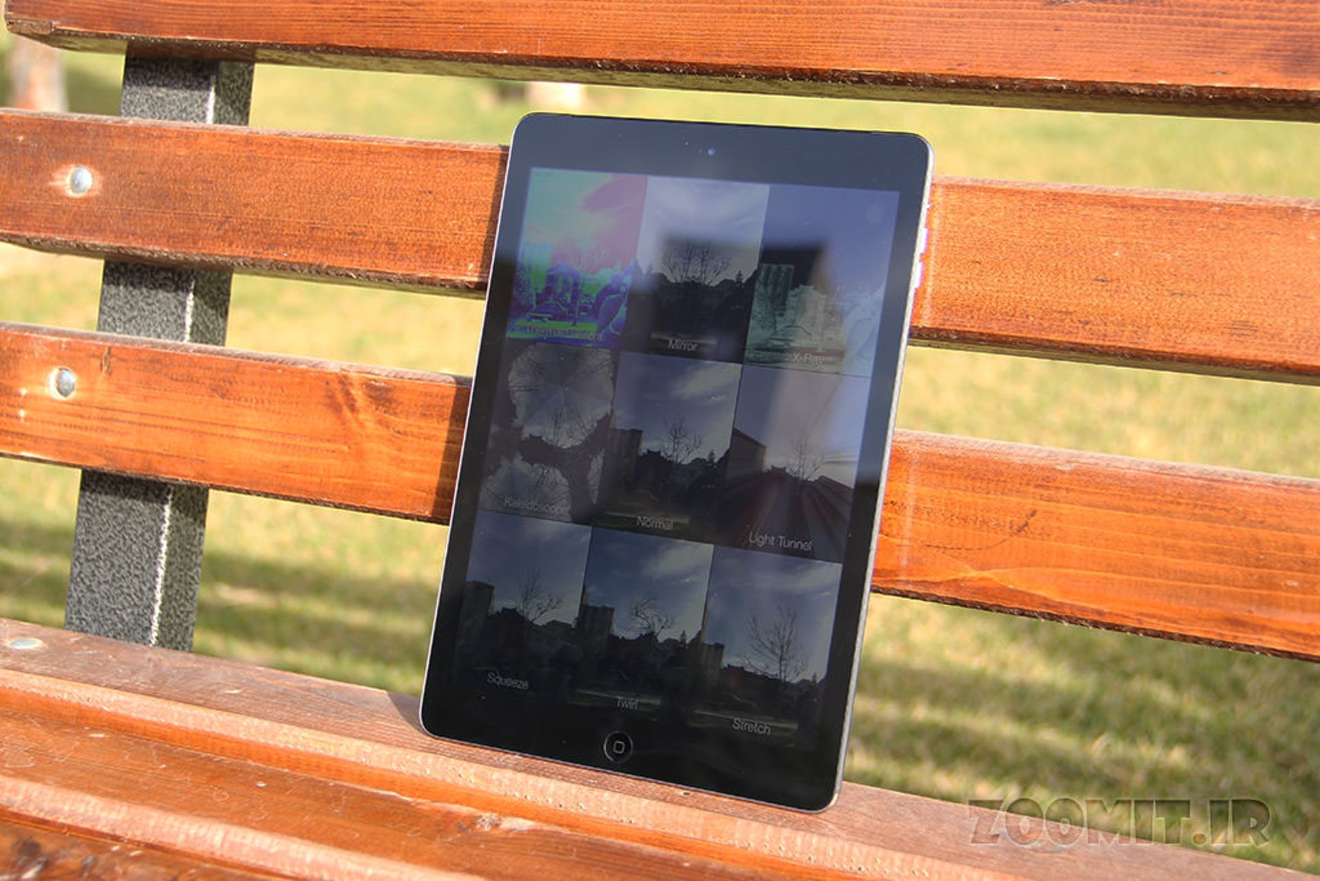 اگر تاکنون با زومیت همراه بوده باشید، با قانونی نانوشته در رابطه با تبلتها آشنایید که در آن هیچ تبلتی تولید نمیشود که در آن دوربین با کیفیت مناسبی داشته باشد. اپل نیز از این قاعده مستثنی نیست و در تبلتهای این شرکت دوربین مناسبی دیده نمیشود. دوربین معمولی 5 مگاپیکسلی آیپد ایر، تصاویر را با نویز فراوان ذخیره میکند و اگر نور محیط مناسب نباشد، تصاویر ضبط شده به هیچوجه قابل قبول نیستند.