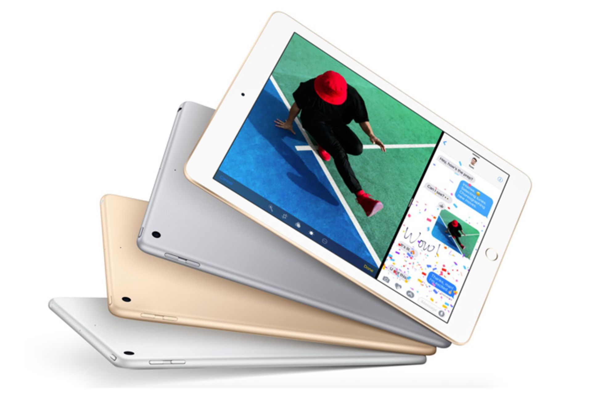 اپل تبلت جدیدی با نام آیپد رونمایی کرده است که جایگزین آیپد ایر ۲ این کمپانی با نمایشگر ۹.۷ اینچی خواهد شد. همانطور که اشاره کردیم، نام این تبلت آیپد است که پسوند و پیشوند خاصی نیز ندارد. مشخصات فنی آیپد جدید اپل شبیه به آیپد ایر ۲ است با این تفاوت که در این تبلت از تراشهی A9 مورد استفاده در آیفون ۶ اس و آیفون ۶ اس پلاس بهره گرفته شده است. قیمت آیپد جدید اپل در مقایسه با نسل پیش شاهد کاهش بوده است، بهطوریکه قیمت نسخهی وایفای با حافظهی داخلی ۳۲ گیگابایتی از ۳۲۹ دلار آغاز میشود، حال آنکه قیمت نسخهی LTE از ۴۵۹ دلار تعیین شده است.