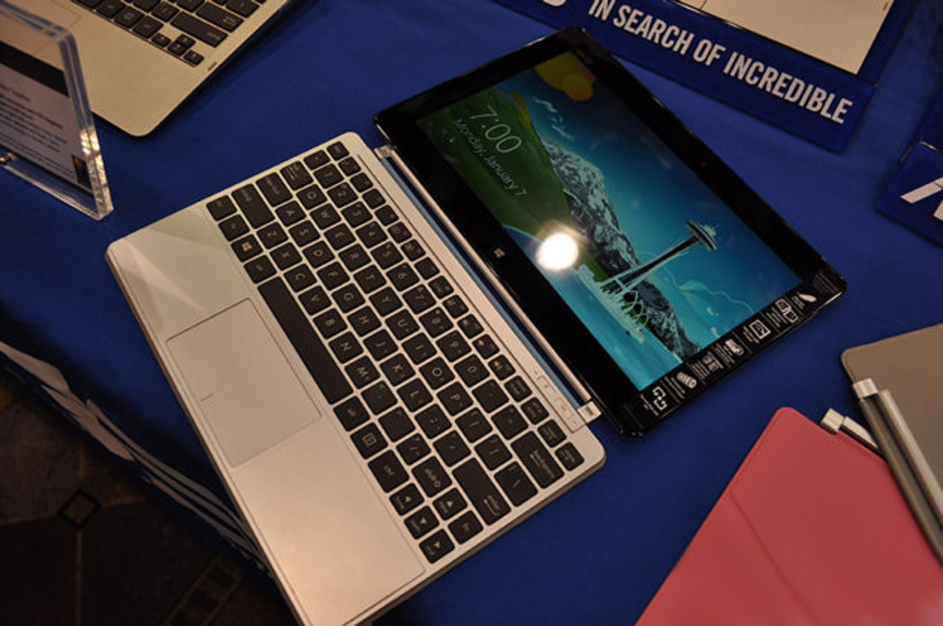 تبلت جدید ایسوس دارای پوششی است که مثل تبلت سرفیس مایکروسافت، کار صفحهکلید را نیز انجام میدهد. پردازندهی این تبلت 10.1 اینچی یکی از مدلهای دو هستهای Atom اینتل به نام Z2760 است. سیستم عامل نیز نسخهی کامل ویندوز 8 است. پشت تبلت یک پایه مشابه تبلت سرفیس تعبیه شده اما صفحهکلید جدا شدنی آن با توجه به استفاده از بلوتوث بهعنوان رابط، بدون اتصال به تبلت نیز کار میکند.