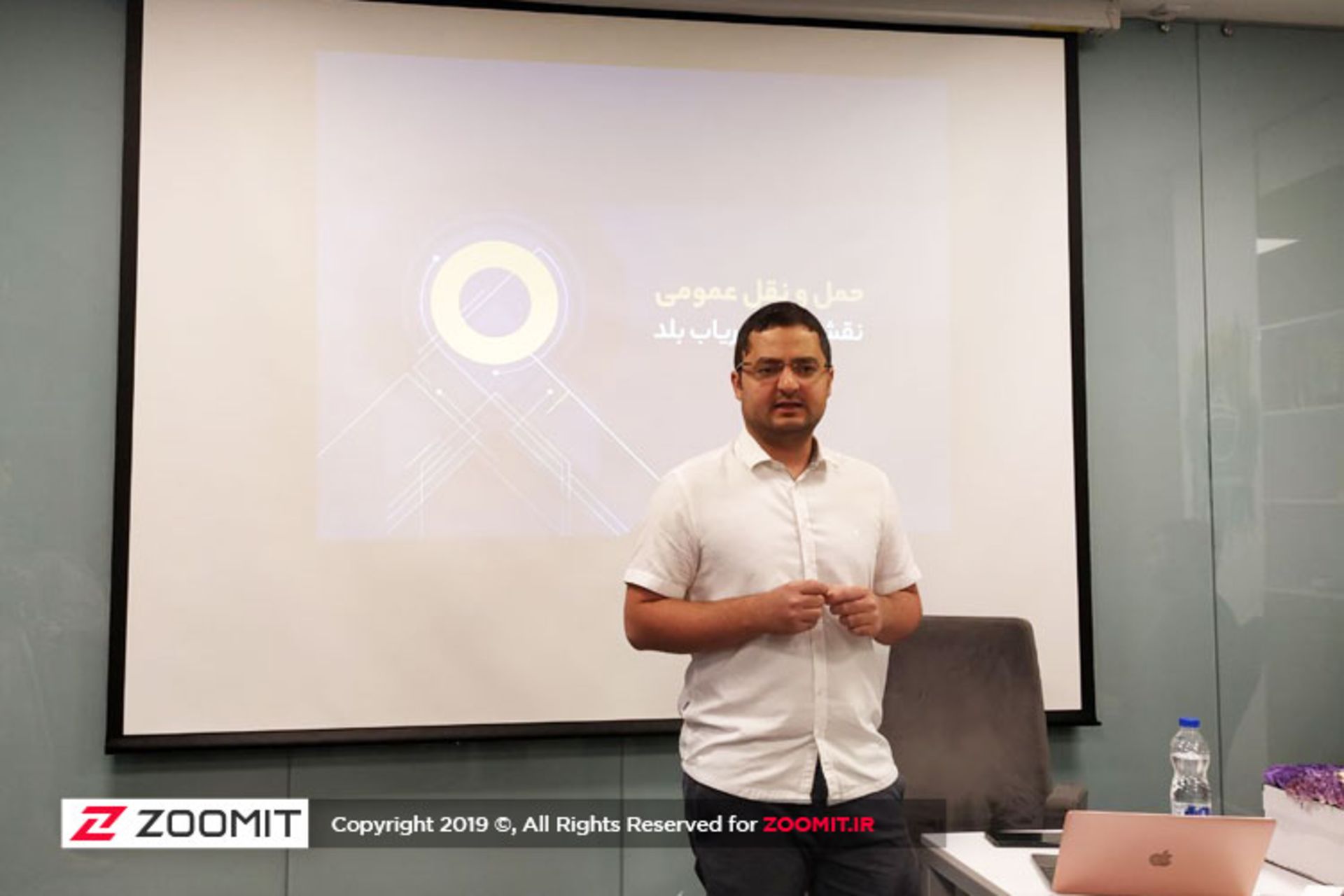 در ادامه محمد رازقی، مدیرمحصول سرویس نقشه و مسیریاب بلد به تشریح جزئیاتی از مسیریابی مبتنی بر سرویسهای حملونقل عمومی پرداخت. براساس اطلاعات ارائهشده توسط رازقی، مسیرهای پیشنهادی بلد مبتنی بر راهکارهای ترکیبی بوده که شامل استفاده از مترو، اتوبوس و تاکسی است. بنابر دادههای ارائهشده توسط رازقی، شهر تهران شامل ۱٫۲۸۸ خط تاکسی، ۵۴۷ خط اتوبوس و ۷ خط مترو است که در مسیریابی بلد مورد استفاده قرار میگیرند. رازقی اظهار امیدواری کرد تا با وجود بلد و تسهیل روندب استفاده از وسایل حملونقل عمومی، سهم ۴۰ درصدی مردم تهران از بهکارگیری وسایل حملونقل عمومی به ۷۵ درصد پیشبینی شده در سند توسعه شهری دست یابد.