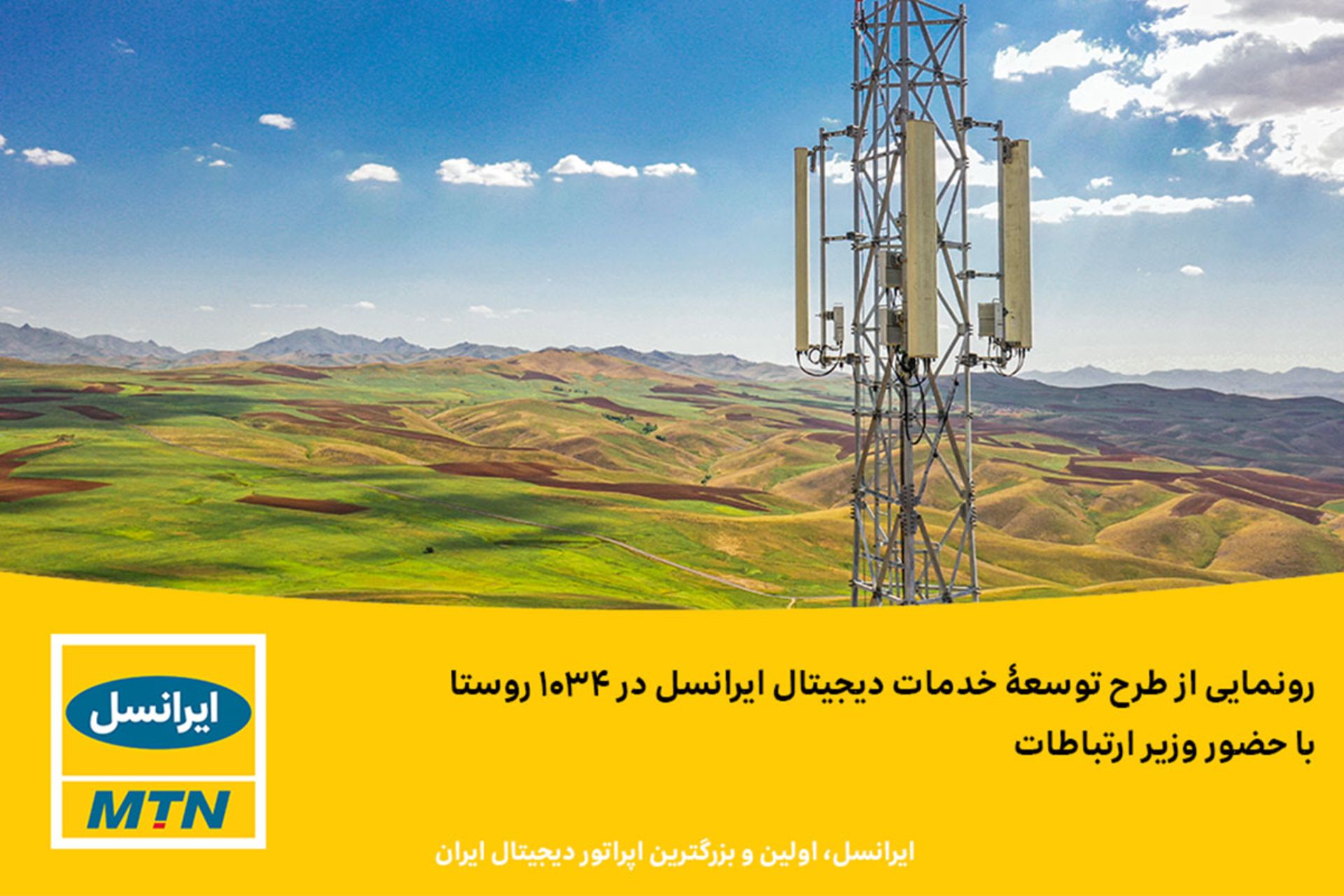 به گزارش روابط عمومی ایرانسل، مراسم «رونمایی از دسترسی ۱۰۳۴ روستا به شبکۀ ملی اطلاعات»، روز شنبه ۲۴ خرداد ماه ۱۳۹۹، با حضور مهندس محمدجواد آذری جهرمی وزیر ارتباطات و فناوری اطلاعات و هیأت همراه، دکتر بیژن عباسی آرند مدیرعامل و معاونان و مدیران ارشد ایرانسل، در آمفی تئاتر ساختمان مرکزی ایرانسل و نیز با حضور آنلاین استانداران کهگیلویه و بویراحمد و کردستان و جمعی از نمایندگان مردم دو استان در مجلس شورای اسلامی، برگزار میشود.