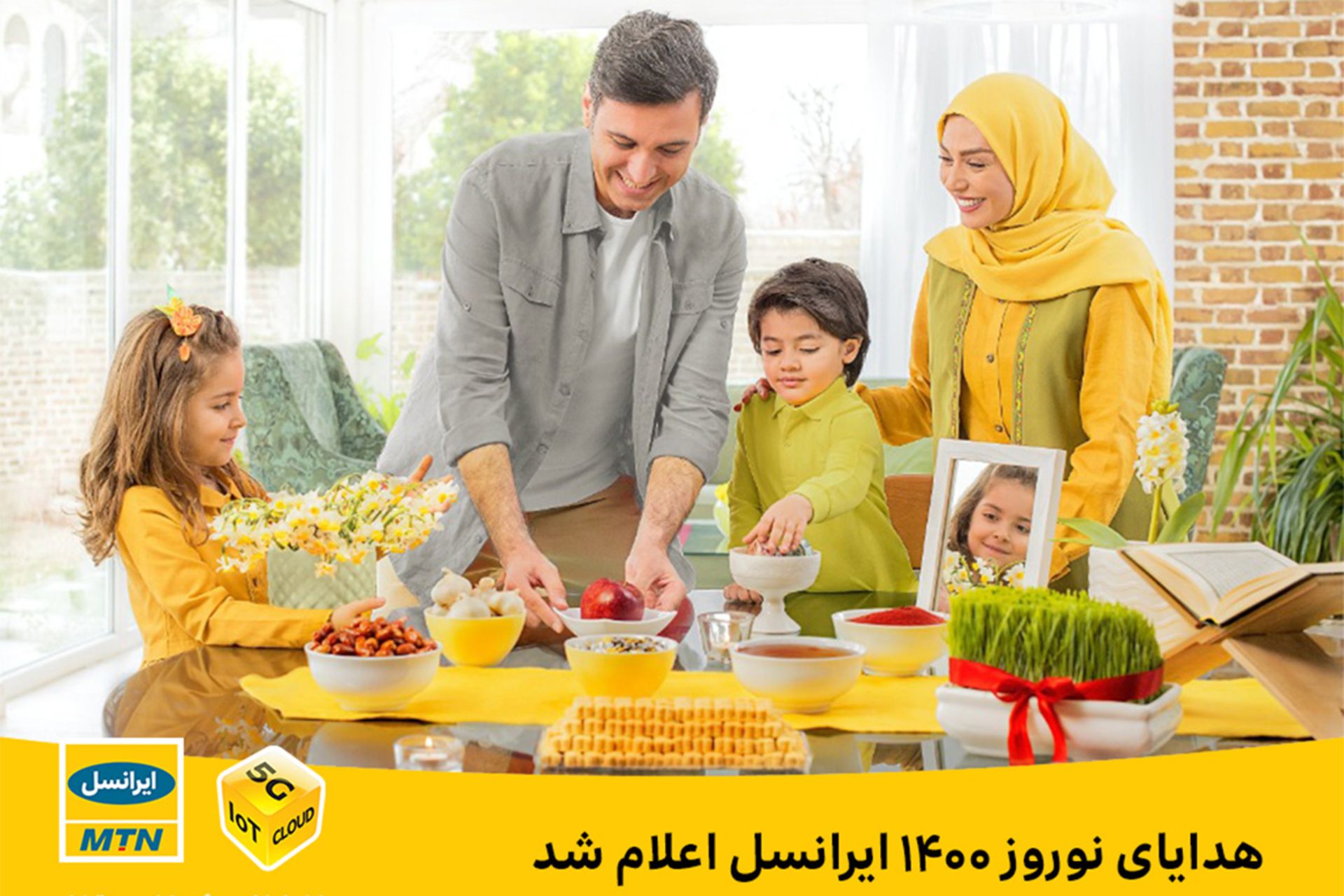 به گزارش روابط عمومی ایرانسل، این اپراتور اعلام کرده است که تمام مشترکانش از ۳۰ اسفند ۹۹ تا ۱۳ فروردین ۱۴۰۰ میتوانند با شمارهگیری #۵* هدیهای شامل بسته ترکیبی یک ساعت مکالمه رایگان درون شبکه و یک گیگابایت اینترنت رایگان دریافت کنند. اعتبار این بسته از زمان فعالسازی، یک ساعت است.