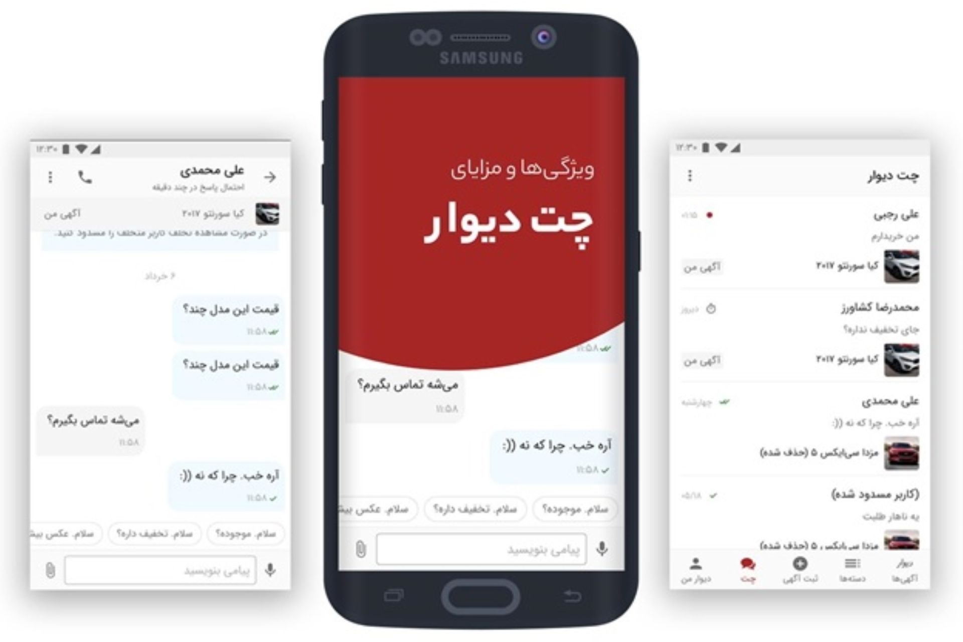 ابزار چت پلتفرم دیوار فقط به مکالمه متنی ختم نمیشود و امکان ارسال پیام صوتی، عکس و لوکیشن به کاربران وجود دارد و حتی قرار است بهزودی پخش فیلم نیز به چت اضافه شود. کاربرانی که بهدنبال خرید و فروش امن و در محیطی آرام و بدون هرگونه مزاحمت هستند باید مکالمه را در ابزار چت داخل پلتفرم دیوار انجام دهند و این مکالمه را به خارج از این فضا نبرند، زیرا درصورت روی دادن هرگونه تخلف مانند کلاهبرداری، ایجاد مزاحمت، رفتارهای مخرب و... امکان پیگیری و رسیدگی از سوی پلتفرم دیوار وجود ندارد. این پلتفرم با الگوریتمهای هوشمند بر چتها نظارت میکند و کاربر متخلف قابل شناسایی است. از این رو آگهیگذاران و آگهیبینندهها باید در این حیطه فعالیت کنند تا تخلفات احتمالی نیز قابل پیگیری باشد.
