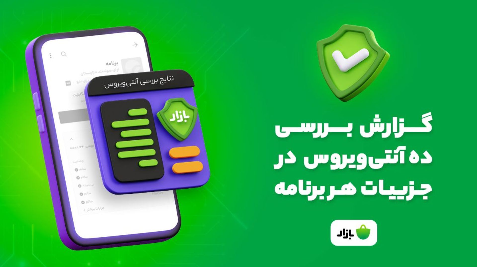 نتایج بررسی هر برنامه توسط ده آنتیویروس معتبر به کاربران بازار اعلام میشود