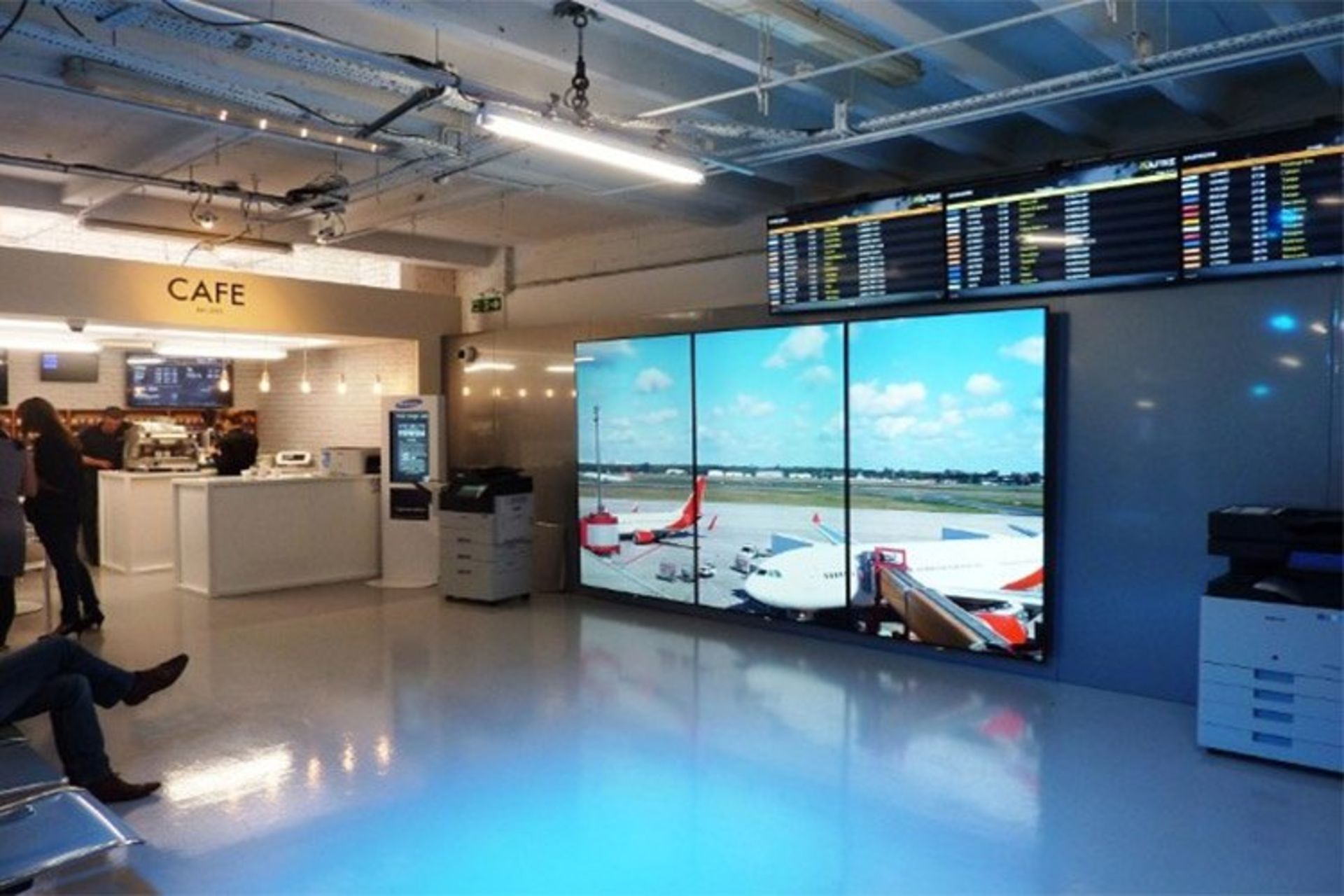 در تصویر زیر نمونهای در ابعاد واقعی از سالن یک فرودگاه و یک کافه میبینیم.
