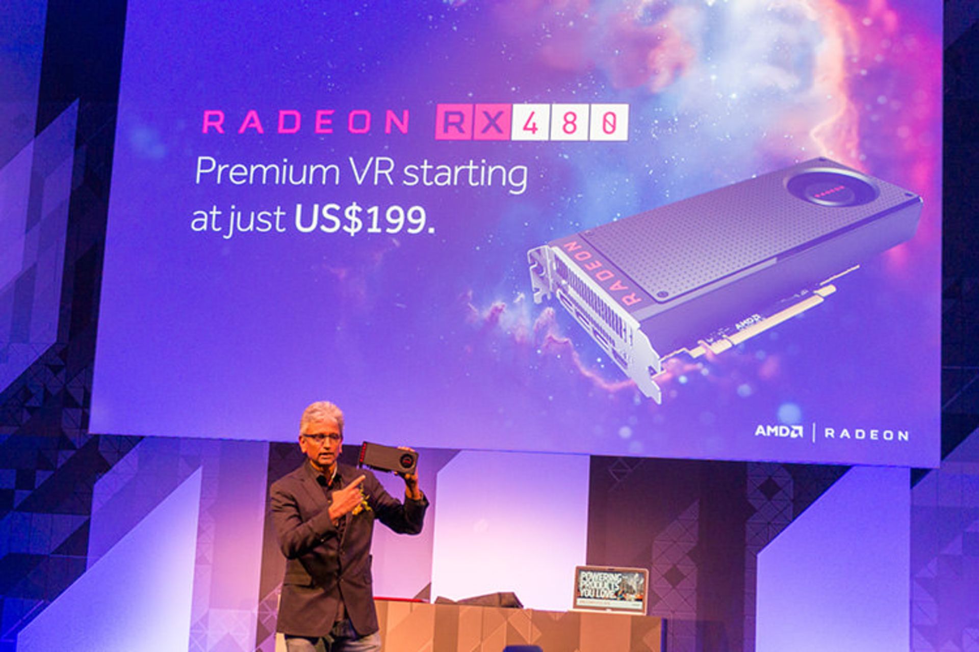 AMD کنفرانس جذابی را در نمایشگاه کامیپوتکس ۲۰۱۶ برگزار کرد. این شرکت مطرح حوزه‌ی سخت‌افزار، در استراتژی جدید کارت‌های گرافیک خود نه تنها گیمر‌های حرفه‌ای را در نظر گرفته، بلکه به دنبال مجهز کردن تمامی کامپیوتر‌ها با بازه‌های قیمتی مختلف به تکنولوژی واقعیت مجازی است. کارت گرافیک رادئون RX480 با معماری جدید پلاریس (Polaris) نیز در همین راستا عرضه خواهد شد. اما نکته‌ی مهم در رابطه با این کارت گرافیک توانمند، قیمت اندک ۱۹۹ دلاری آن است. RX480 توانایی پردازش بیشتر از ۵ ترافلاپس را به همراه دارد، این در حالی است که کارت گرافیک GTX 1070 انویدیا با توان پردازشی ۶ ترافلاپس، برچسب قیمت ۳۸۰ دلار دارد. هم‌چنین کارت گرافیک GTX 1080 با قیمت ۶۰۰ دلاری خود، توان پردازشی ۹ ترافلاپس را برای کاربر به ارمغان می‌آورد. تا به اینجا و روی کاغذ، کارت گرافیک جدید AMD توان پردازشی فوق‌العاده‌ای را نسبت به قیمت خود عرضه می‌کند.