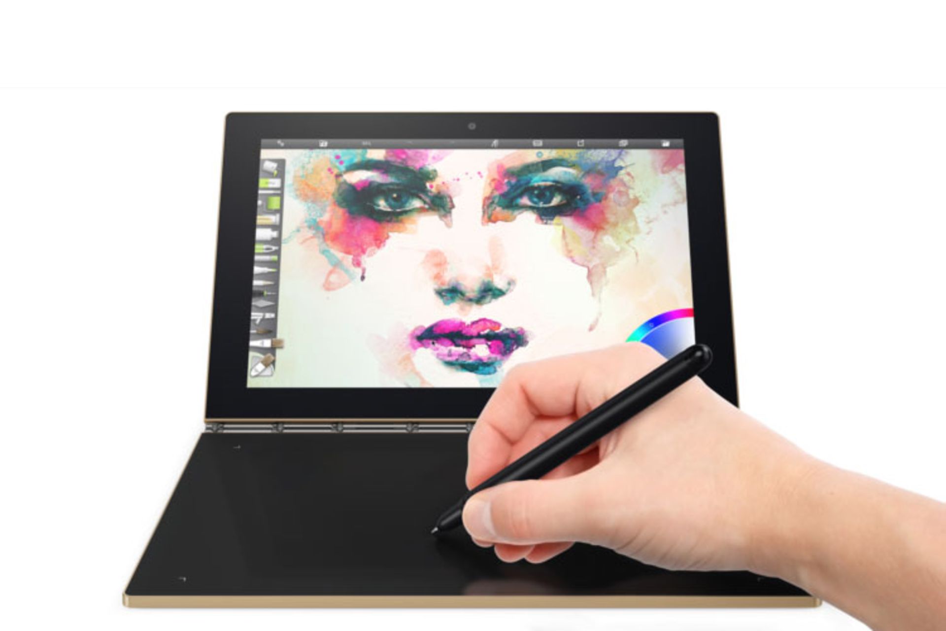 تبلت یوگا بوک در نسخههای مجهز به اندروید و ویندوز ۱۰ عرضه خواهد شد و قیمت ارزانترین نسخههای آن ۴۹۹ و ۵۴۹ دلار خواهد بود. این تبلت یک دستگاه با کارایی دوگانه است. صفحهکلید استفاده شده در آن، به فشار حساس است و میتواند نوشتهها و طرحهای کاربر را ذخیره کند. حتی اگر کاربر کاغذی را روی این صفحه یا پشت آن قرار دهد و روی آن ترسیم کند، یک کپی از این طرح ذخیره خواهد شد. این صفحه به خاطر ابعاد کوچکش نمیتواند انتخاب مناسبی برای کارهای حرفهای باشد اما همین ابعاد کوچک آن را به یک صفحهی یادداشت همراه کاربردی تبدیل میکند.