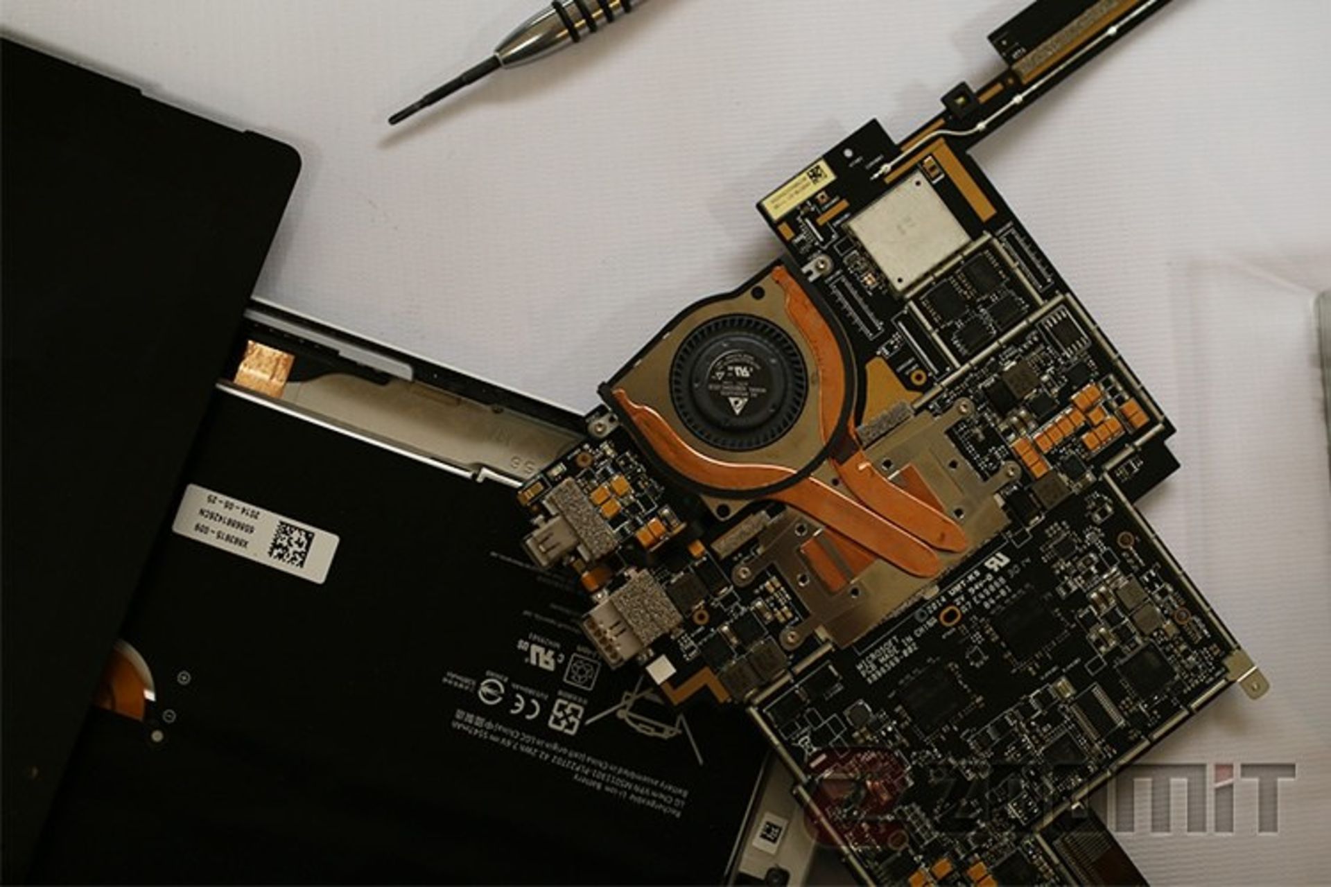 تکنسینهای این شرکت تبلت را قدم به قدم ابتدا از صفحه نمایش و سپس بخشهای دیگر باز کردند و سپس مجدد سرهم کردند.