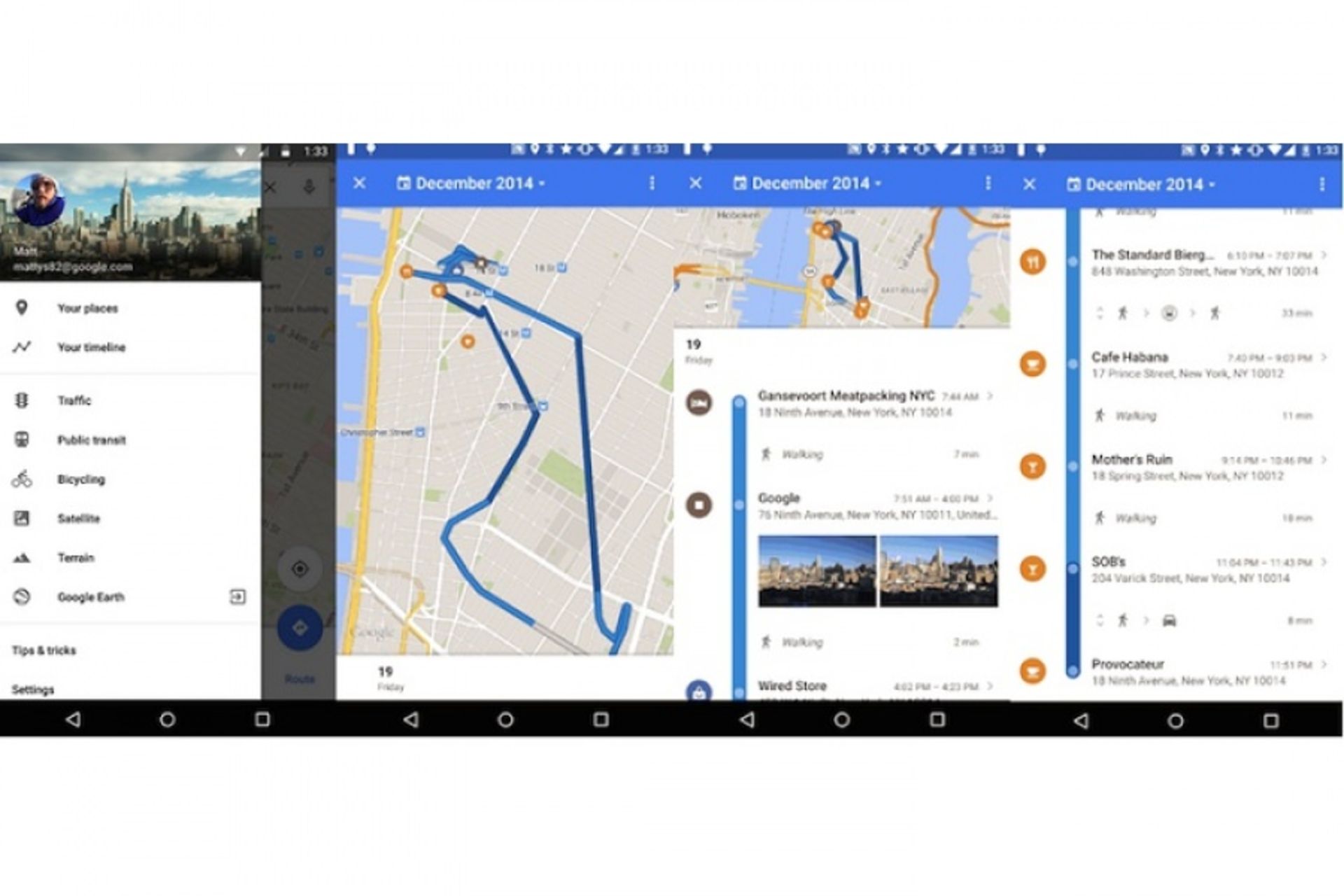 شرکت گوگل ویژگی جدیدی را توسعه داده که تمامی مکان‌هایی که کاربر در آنجا حضور داشته را به همراه تصاویر محل‌ها ذخیره می‌کند. این قابلیت به سرویس مپس گوگل اضافه شده  و همه‌ی کاربران می‌توانند به آن دسترسی داشته باشند.