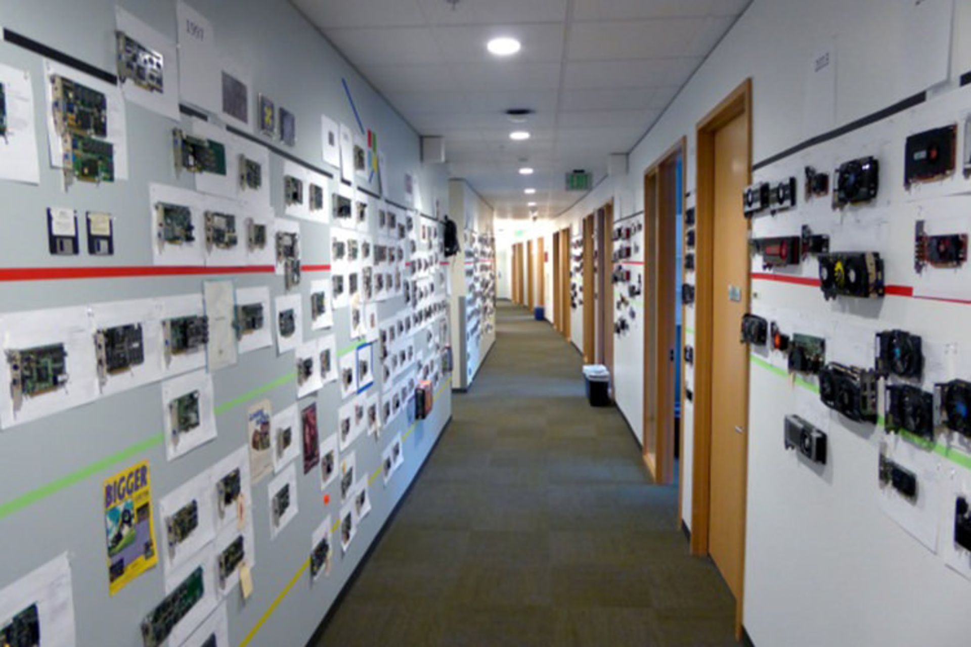«ممکن است شما نیز کارت‌های گرافیکی بسیاری در طی سال‌های کاری خود تعویض کرده باشید، همان‌طور که در طول زمان، ما نیز چنین شرایطی داشتیم. شما با کارت‌های گرافیکی قدیمی چه کار می‌کنید؟ یک راهکار آن است که آن‌ها را در جعبه‌ای در انبار دفتر یکی از آشنایان خود نگه‌داری کنید. ما نیز ابتدا همین روال را در پیش گرفته بودیم تا اینکه راهکار بهتری پیدا کردیم و تصمیم گرفتیم یکی از راهروهای شرکت را به موزه‌ی تاریخی GPU تبدیل کنیم.»