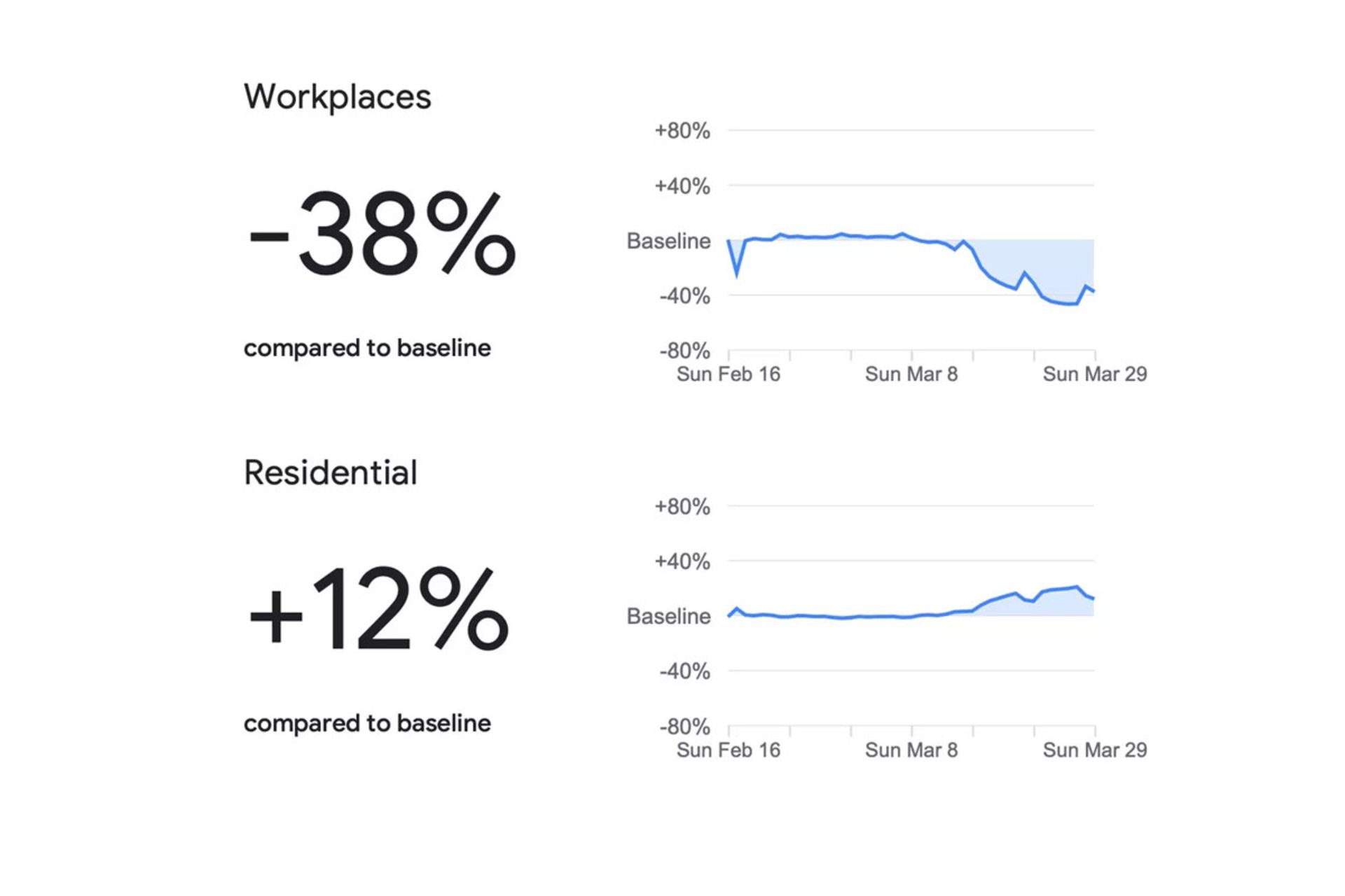گوگل با بهرهگیری از دادههای مکانی گوشیهای هوشمند، به کمک مقامهای مسئول سلامت در ایالات متحده میآید و واکنش مردم در تغییر رفتار برای جلوگیری از شیوع بیشتر ویروس کرونا را بررسی میکند. غول موتور جستوجو در پست وبلاگی جدیدی خبر از عرضهی سرویس COVID-19 Community Mibility Report داد که به همین منظور توسعه یافته است.