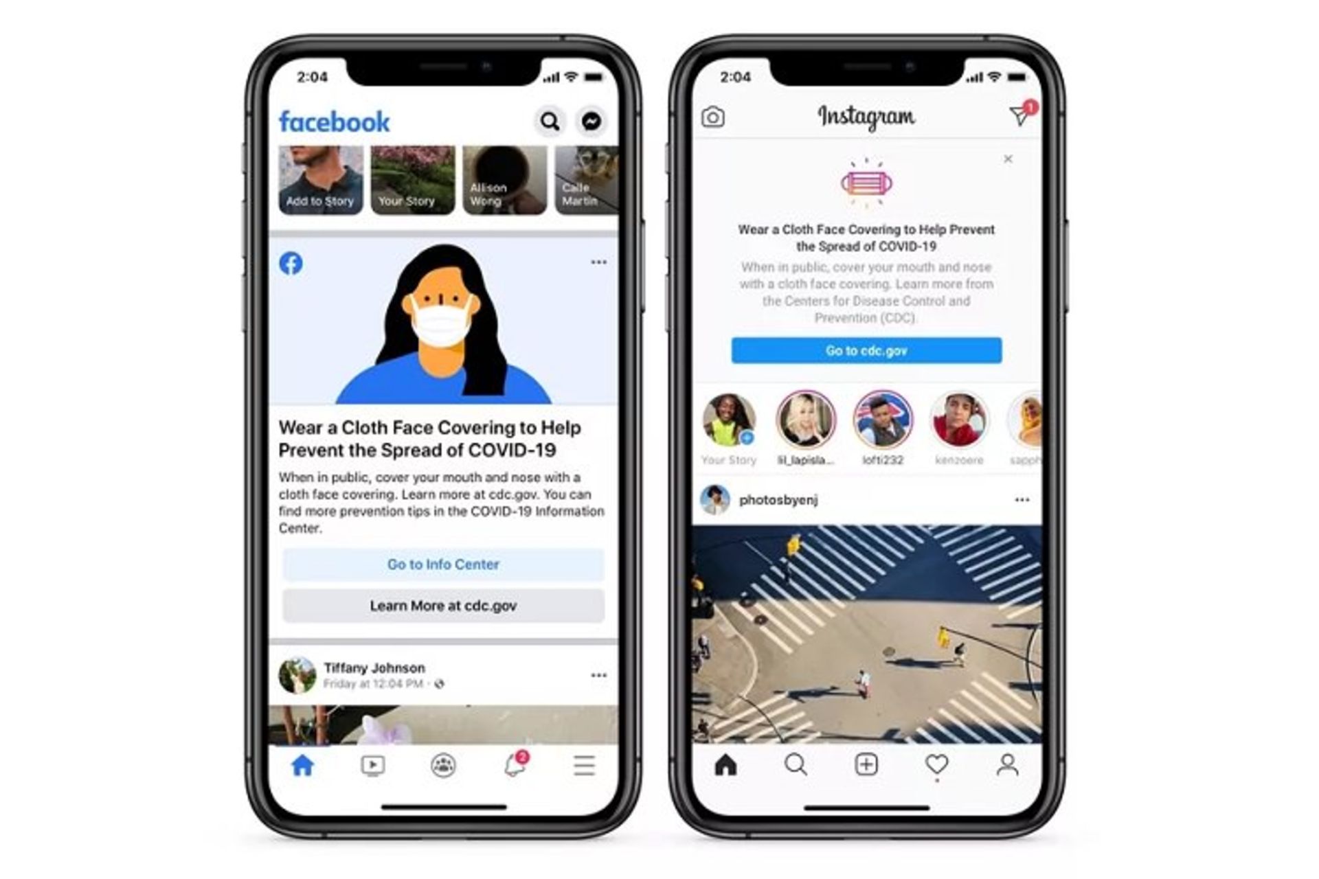 فیسبوک رسما اعلام کرد پیامهایی تبلیغاتی مبنیبر پوشیدن ماسک به اینستاگرام و فیسبوک میافزاید و تلاش میکند با تشویق کاربرانش به این کار، از روند روبهرشد گسترش ویروس کووید ۱۹ جلوگیری کند. این پیامها در فیسبوک در بالای فید اخبار و در اینستاگرام، بالاتر از فید اصلی بهنمایش درمیآیند.