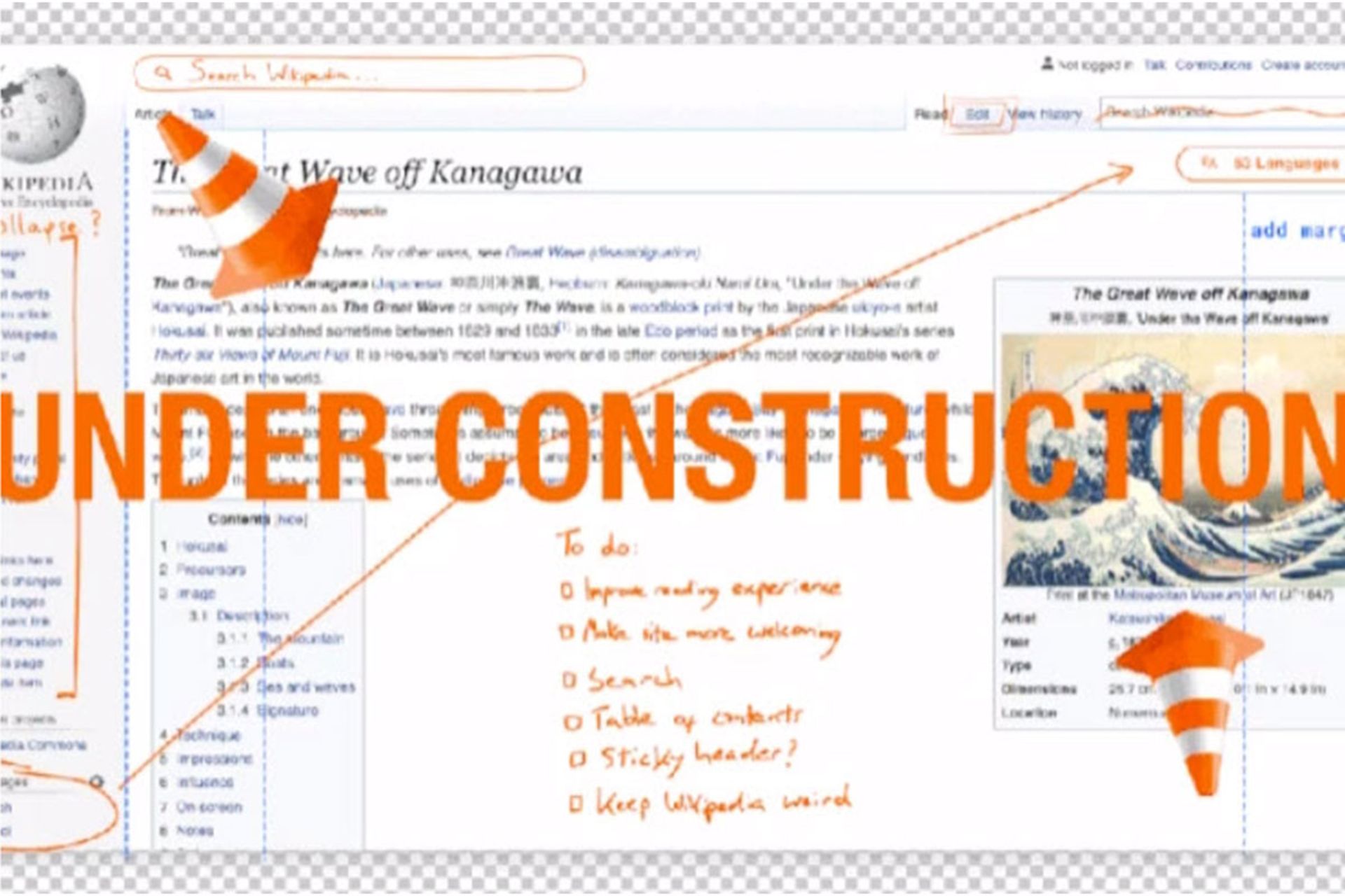 ویکیپدیا در وبسایت MediaWiki جزئیات ویژگیهای جدید پیشنهادی را منتشر کرده است و برای درک بهتر قابلیتها، درکنار توضیحات، تصاویر متحرک نیز قرار داده است. مهمترین تغییر را شاید بتوان مرتبط با فهرست مطالب (Table of Content) دانست؛ بهویژه در صفحههای طولانی اگر کاربر قصد داشته باشد بین مدخلهای مختلف جابهجا شود در حالحاضر باید به ابتدای صفحه برود؛ اما در تغییرات جدید قرار است منوی فهرست مطالب در بالای صفحه و بهصورت منوی نواری بهنمایش درآید و با پایینرفتن در صفحه نیز این نوار منو در بالای نمایشگر ثابت بماند تا درصورت نیاز کاربر قادر باشد بین مدخلهای مختلف جابهجا شود.