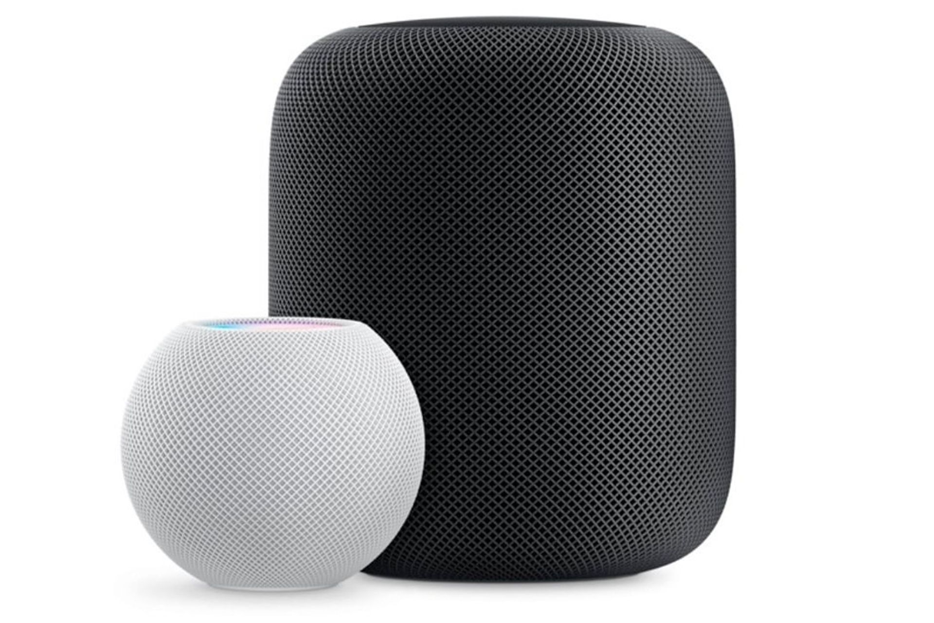 دستگاهی برای آشپزخانه که ترکیبی از آیپد و بلندگو است.دستگاهی برای اتاق نشیمن که ترکیبی از Apple TV، دوربین و هومپاد است.