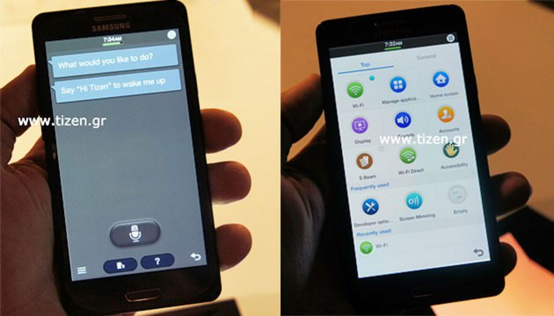 تایزن سیستم عامل مبتنی بر HTML5 است که سامسونگ حساب ویژهای را روی آن باز کرده است. از زمانی که گوگل نسبت به خرید موتورولا-موبایل اقدام کرد، سامسونگ سرمایهگذاری بیشتری را روی آن انجام داد تا اگر زمانی گوگل، شرایط استفاده از اندروید را برای تولیدکنندگان سختافزاری مشکل کرد یا خود نسبت به ساخت تلفن مستقل اندرویدی اقدام نمود، گزینه جایگزینی را دراختیار داشته باشد. سامسونگ در تلاش است تا تمام سرویسهای نرم افزار فعلی که در سری تلفنهای گلکسی وجود دارد را برای تایزن نیز ارائه کند. بهعنوان مثال در تصاویری که از این ابزار بدست آمده میتوان دستیار صوتی سامسونگ، S Voice را مشاهده کرد که در سیستمعامل تایزن اجرا شده است.