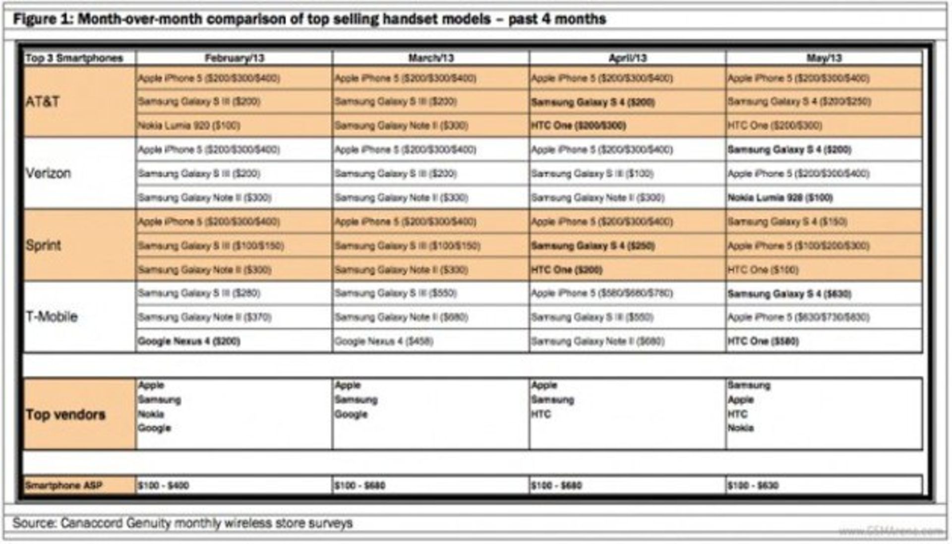 ورایزون، اسپیرینت و تی-موبایل 3 اپراتور بزرگ مخابراتی ایالات متحده هستند که گلکسی اس 4 را در صدر جدول فروش خود دارند و نکته جالب اینکه این پرچمدار اندرویدی سامسونگ توانسته برای اولین بار در طول تاریخ رکورد بیشترین فروش را از چنگ آیفون 5 اپل، البته در ایالات متحده، بگیرد و خودش به تنهایی بر روی سکوی اول بایستد.