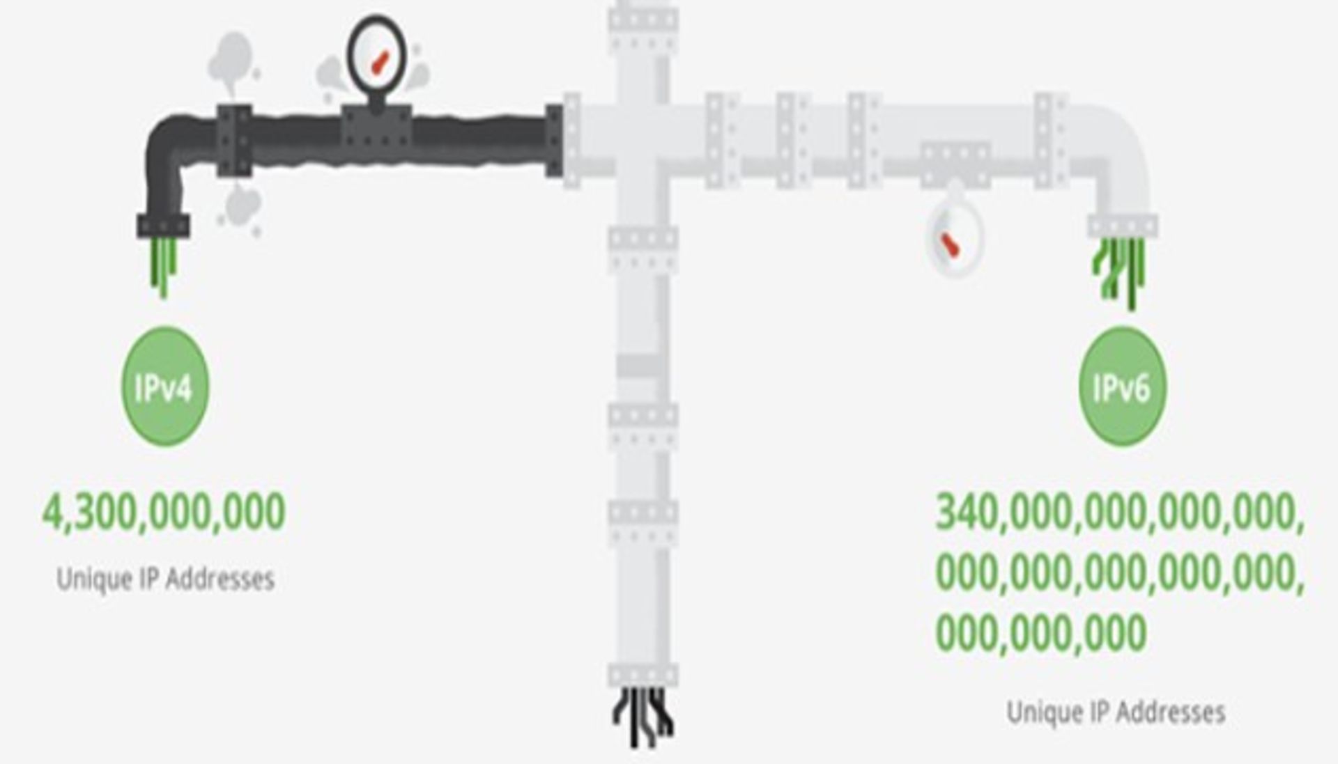 IP یا پروتکل اینترنت، یک آدرس و مکان مخصوص را به هر دستگاه قابل اتصال به اینترنت اعطاء میکند. امروزه اکثر ما از نسخه چهارم آن استفاده میکنیم که در دهه 1980 مورد بهرهبرداری قرار گرفت؛ اما ترس از زیاد شدن بیش از اندازه دستگاههای متصل به اینترنت و تمام شدن IPV4، دانشمندان را به تولید نسخه ششم وادار کرد. IPV4 میتواند چهار میلیارد و سیصد میلیون آدرس منحصر به فرد را به دستگاهها اختصاص دهد اما قطعا در مقابل IPV6 نمیتواند عرض اندام کند زیرا نسخه ششم این قابلیت را دارد که 340 تریلیون تریلیون تریلیون (یعنی 340 به همراه 36 صفر در ادامه!) آدرس منحصر به فرد را به دستگاهها اختصاص دهد. همچنین قابلیتهای بیشتری نسبت به نسخه چهارم دارد؛ برای مثال برخی از ویژگیهای این نسخه عبارتاند از: