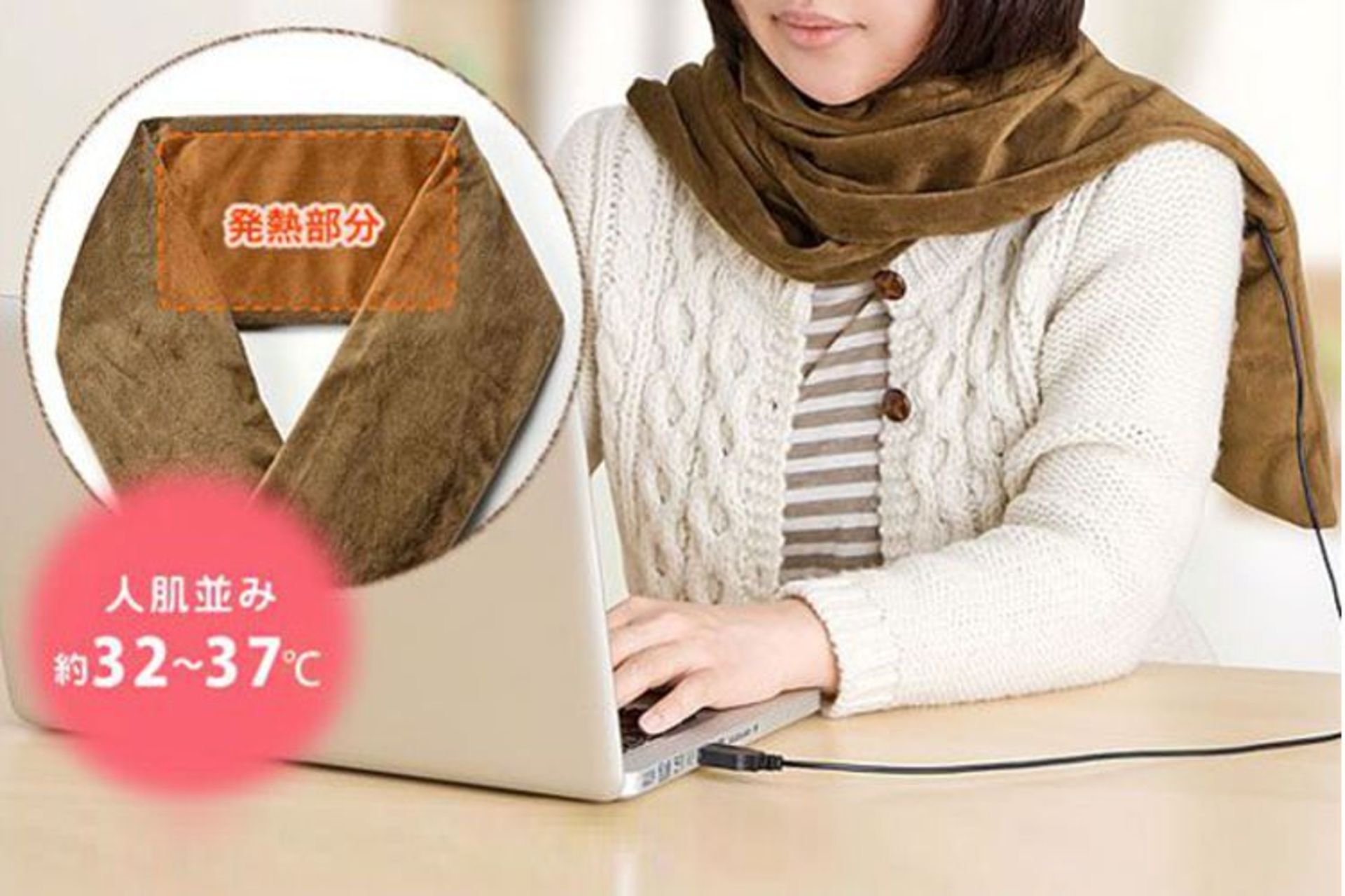 این محصول جدید که تقریبا شبیه به شال گردن است، مجهز به یک المنت گرمازا است که از طریق درگاه یواسبی کامپیوتر تغذیه میشود. بنابراین هر زمان که مشغول کار کردن با لپتاپ خود باشید، میتوانید از گرمای ایجاد شده توسط این شال گردن الکتریکی لذت ببرید.