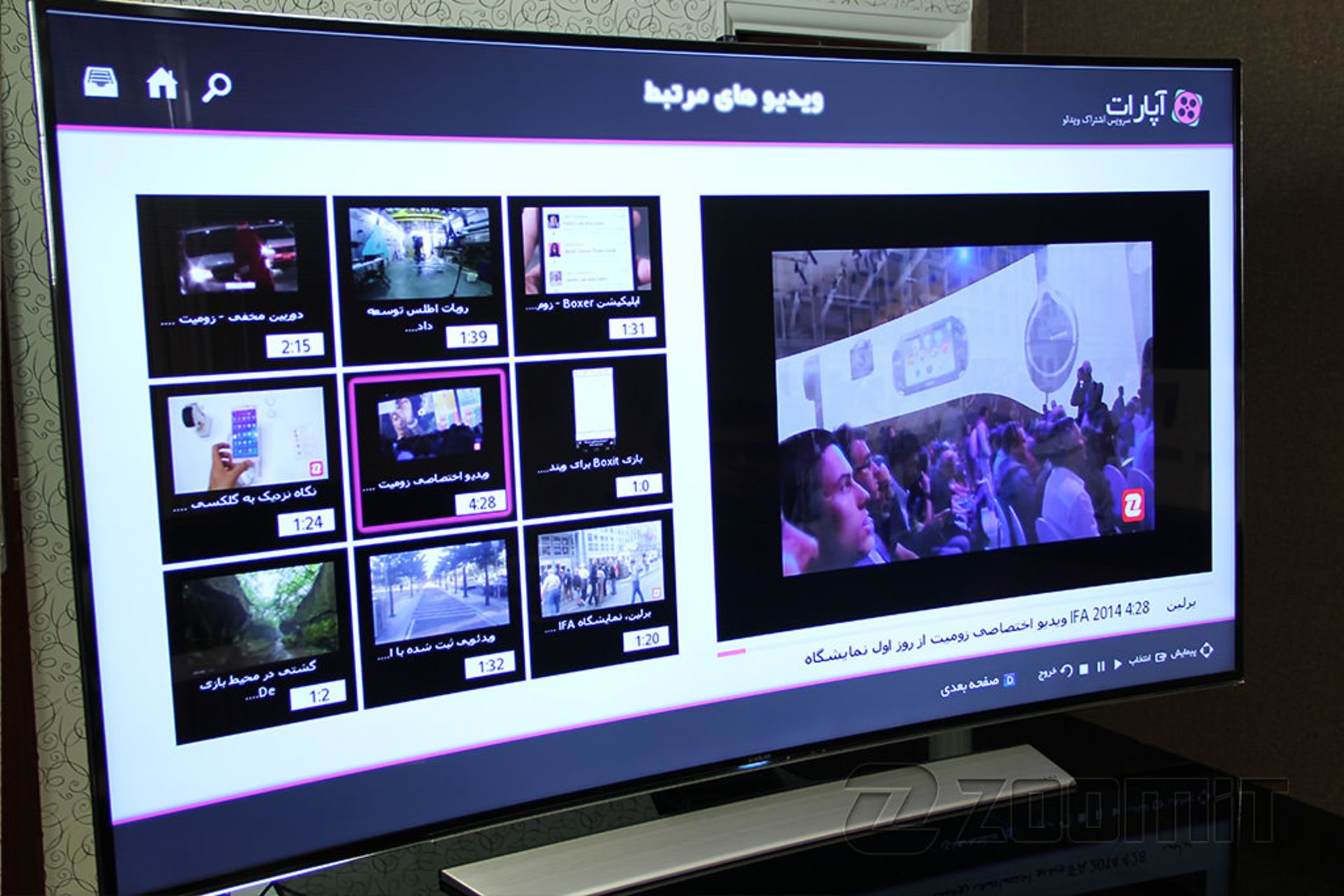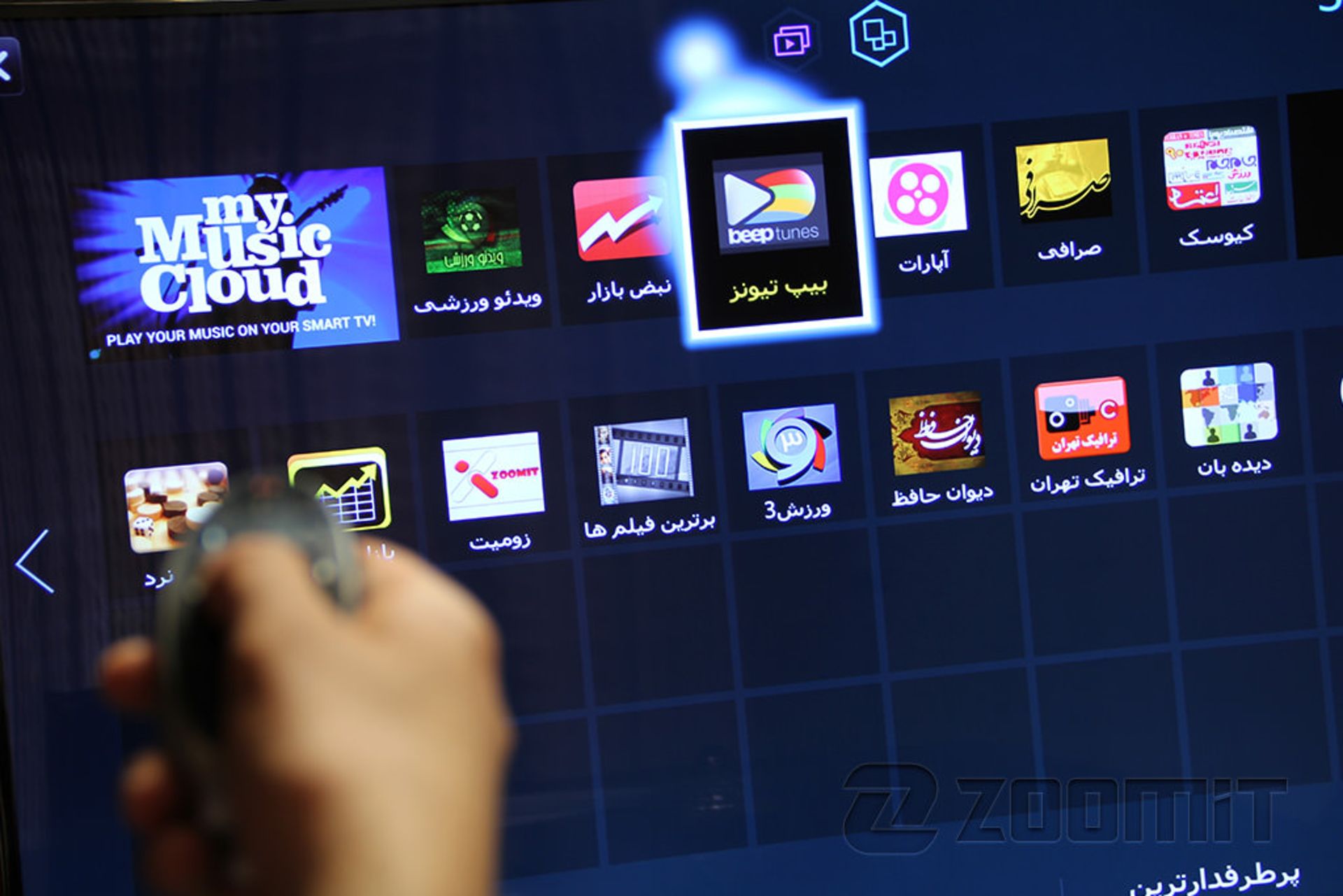 یکی از قابلیت بسیار خوب در تلویزیونهای هوشمند امروزی پشتیبانی از درگاه USB و امکان پخش انواع فایلهای صوتی و تصویری از طریق حافظههای جانبی مانند دیسک سخت و حافظه فلش است. برای آزمایش فایلهای ویدیویی مختلف از جمله MKV ،MP4 ،Divx با رمزگذاری X264 و XVID را بر روی آن پخش کردیم و تلویزیون به راحتی و بدون هیچ واسطهای قادر به پخش آنها شد، حتی زیرنویس فارسی هم به خوبی پخش شد البته به شرطی که درون یک فایل MKV قرار گرفته باشد و دستگاه قادر به انتخاب فایل زیرنویس جداگانه نیست. اپلیکیشنهای بسیار دیگری نیز وجود دارند که میتوانید آنها را بر روی تلویزیون اجرا کنید و از طریق آنها خبر بخوانید، به ویرایش اسناد بپردازید یا بازی کنید. حتی میتوانید از طریق اپلیکیشن زومیت، به مهمترین اخبار دنیای تکنولوژی و برترین مقالات، بررسی محصولات و راهنمای خرید دسترسی داشته باشید.
