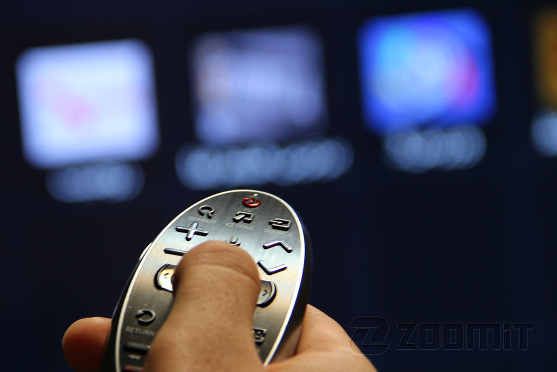 بر روی ریموت کنترل چند دکمهی فیزیکی برای کم و زیاد کردن حجم صدا، تغییر منبع تصویر، دسترسی سریع به اسمارت هاب و چند دکمه محدود دیگر وجود دارد. اما این ریموت کنترل دارای یک پد لمسی است که بسیار شبیه به تاچپد لپتاپها عمل میکند و میتوان از آن برای کنترل تلویزیون مخصوصا در محیط اسمارت تیوی استفاده کرد.