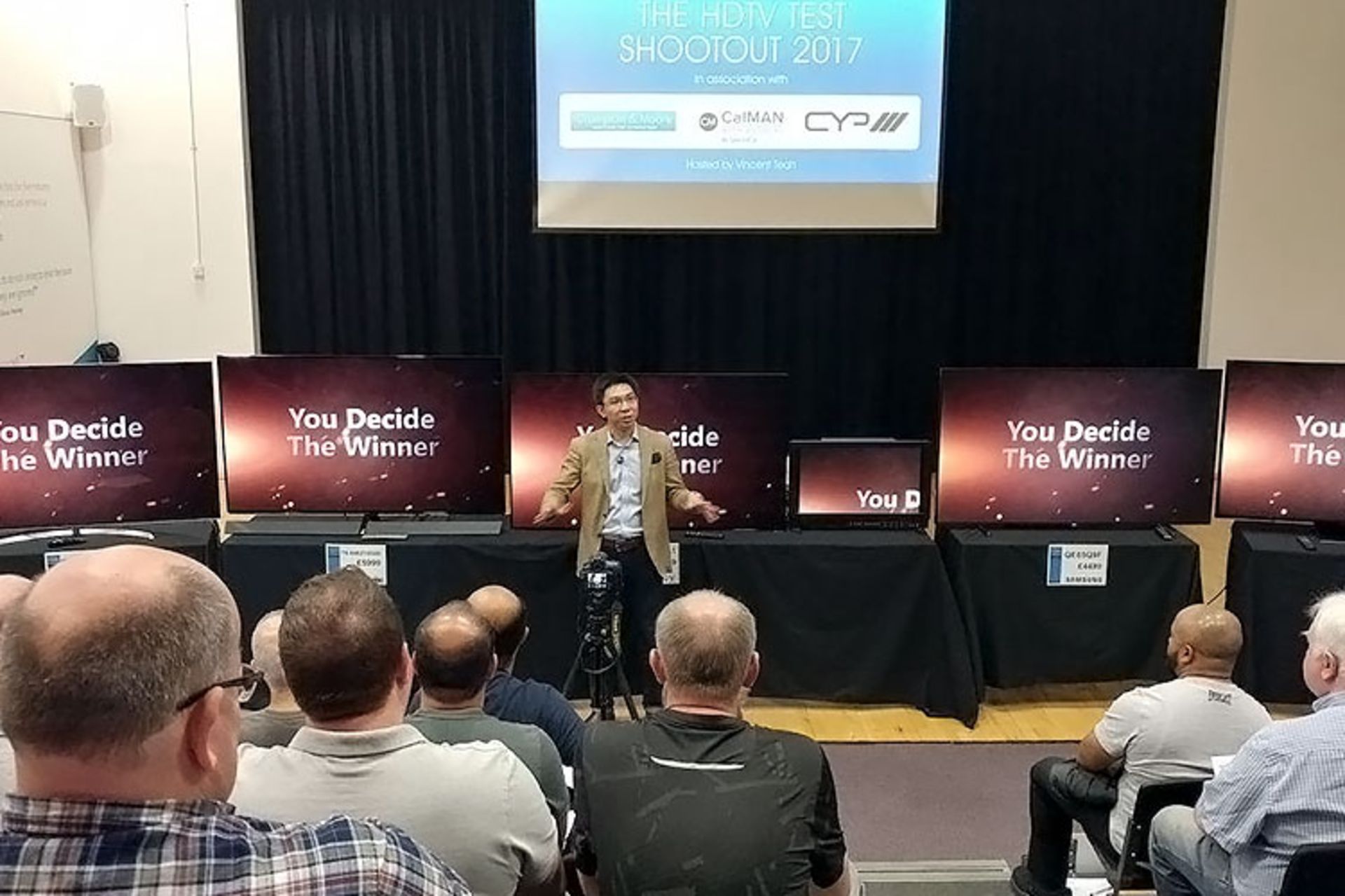 در این مراسم از حاضرین درخواست شد تا این پنج تلویزیون را در ۸ شاخص (نسبت کنتراست، دقت رنگها، نشان دادن سوژههای سریع، یکپارچگی تصویر، پردازش ویدئو، اجرای بازیهای کامپیوتری، خوانایی تصویر در محیطهای پرنور و کیفیت تصویر HDR) مقایسه کنند. این ۸ شاخص کمک کرد تا این تلویزیونها در پنج رسته، رتبهبندی شوند. نکتهی جالب اینکه تلویزیونهای اولد در هر ۵ رسته، برنده شدند.