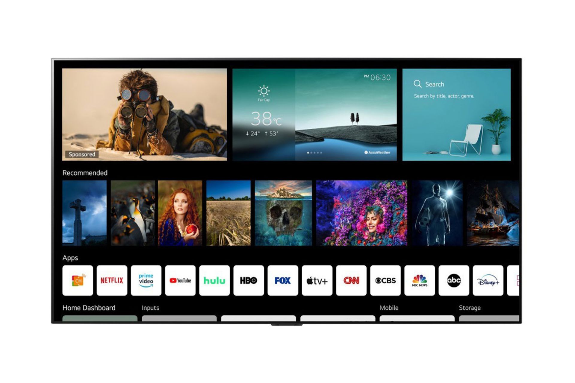 در WebOS 6 دیگر خبری از آن طراحی قبلی نیست و الان صفحه خانه تمام فضای اصلی را در برگرفته است و تقریباً چیزهایی را مشاهده میکنید که روی تلویزیونهای دیگر هم میبینید. دیگر خبری از آن تیغه رنگی WebOS روی نسخه جدید نیست و همه چیز راحتتر و سریعتر دردسترس کاربر قرار میگیرد. سیستمعامل WebOS 6 کاری کرده که حداقل در ظاهر ساده و سرراست باشد.