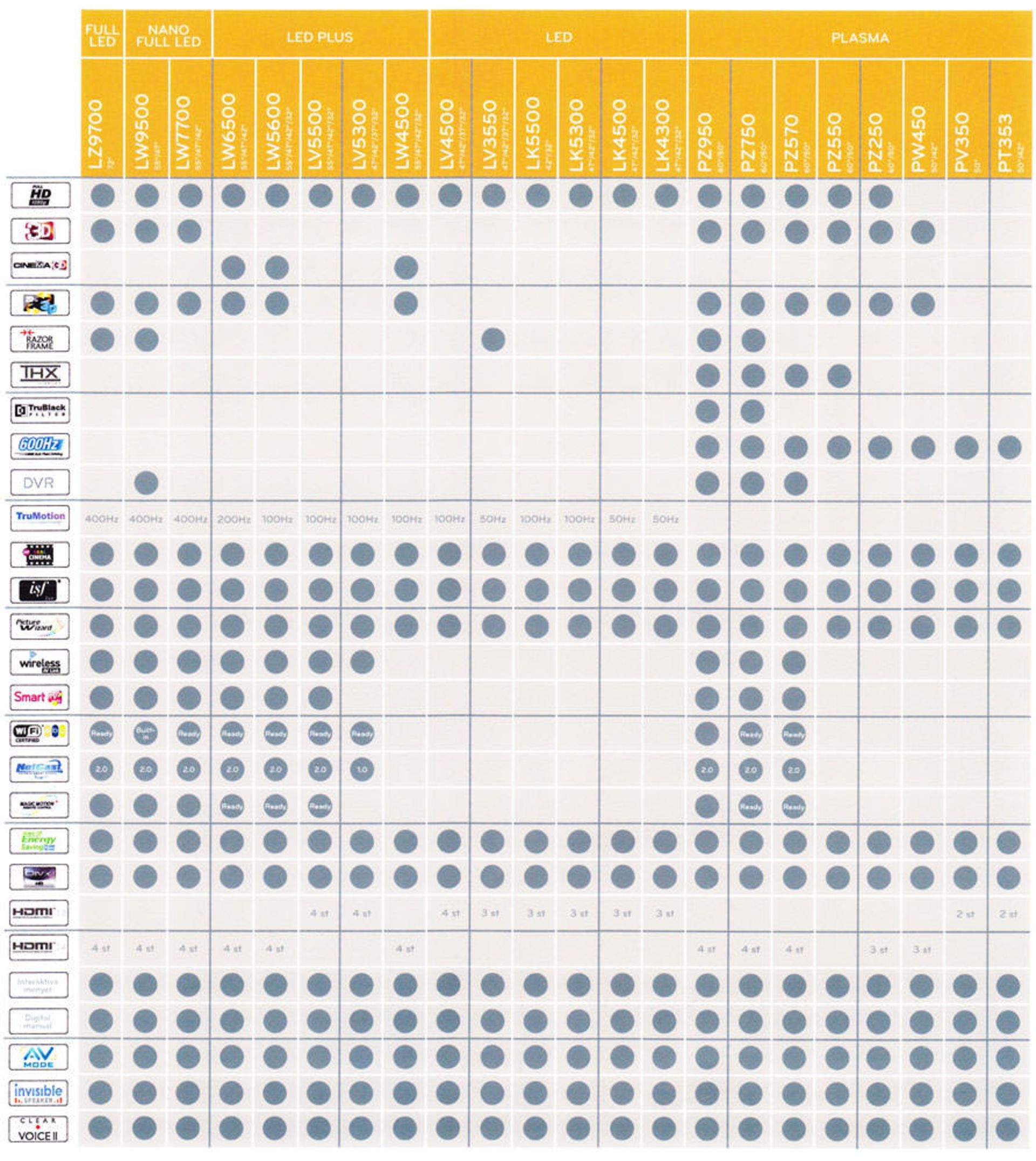 مدل های LV4500، LV3500، LK5500 ، LK4500 و LK4300
