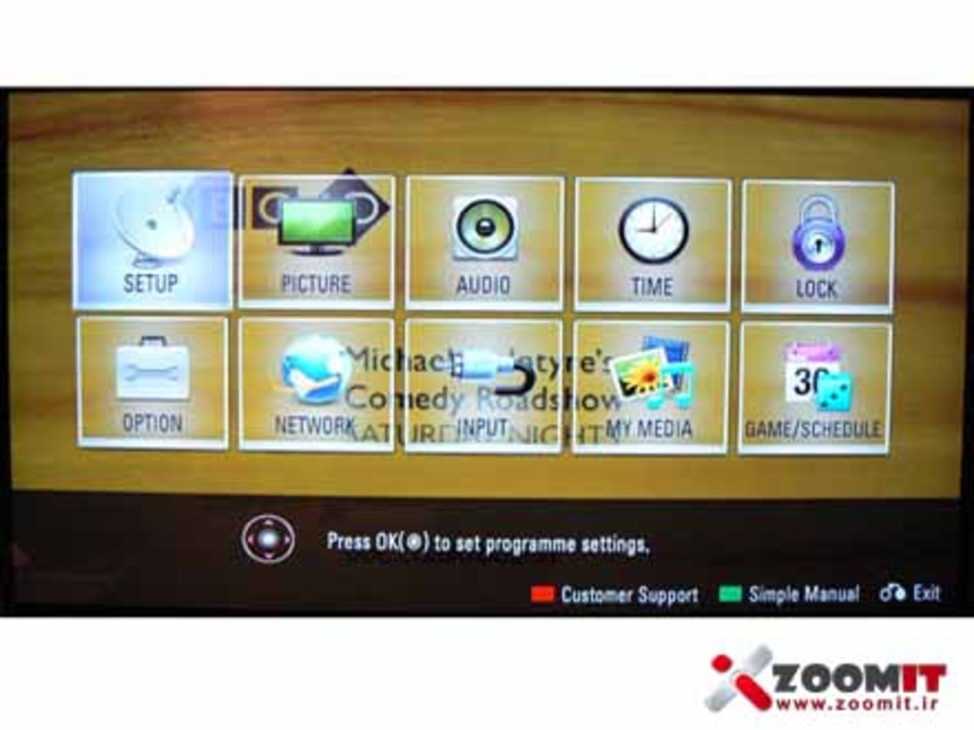 همان‌طور که در تصویر مشاهده می‌کنید منوی زیبا و رنگارنگ این تلویزیون، باعث می‌شود به‌راحتی مسیر خود را در بین آپشن ها بیابید.