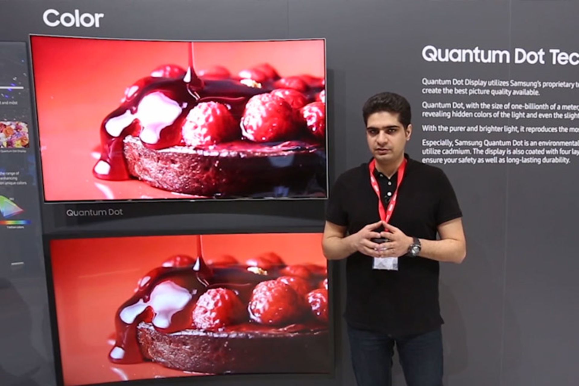 شرکت سامسونگ در نمایشگاه IFA 2016 برلین غرفهی بسیار بزرگی را برای به نمایش گذاشتن تلویزیونهای جدید خود، اختصاص داده است. این شرکت کرهای تلویزیونهای جدید خود را به فناوری نوظهوری موسوم به Quantum Dot مجهز کرده است. به لطف این فناوری، نمایشگرهای این کمپانی به جای ۱۶ میلیون رنگ، یک میلیارد رنگ را به نمایش میگذارند. از بهبودهای دیگری که فناوری کوانتومدات فراهم میکند، میتوان به مواردی همچون روشنایی بیشتر، بهرهوری انرژی بهتر و میزان burn-in یا تصویر شبح کمتر اشاره کرد.