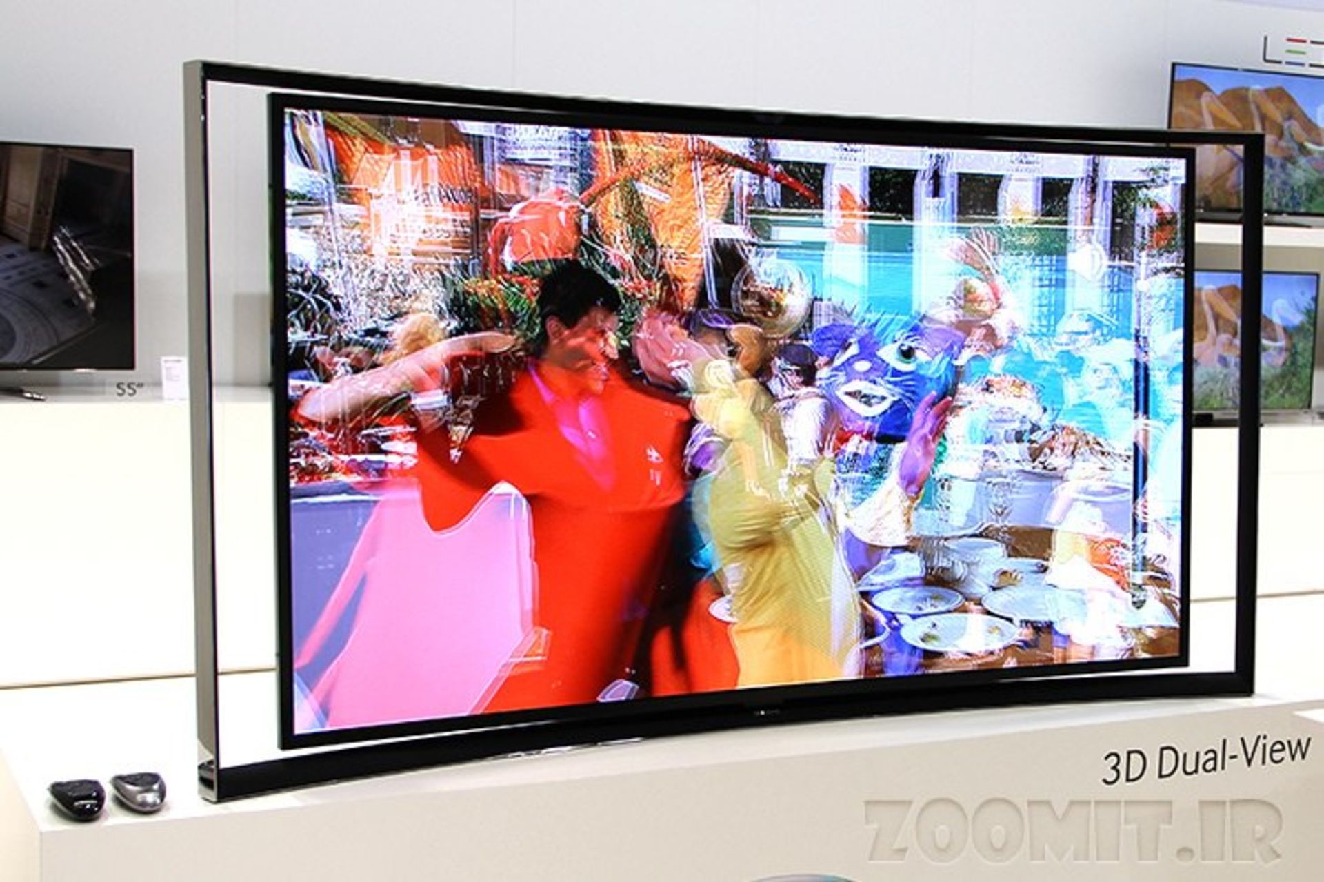 نگاه نزدیک به تلویزیون سه بعدی خمیده سامسونگ با قابلیت پخش همزمان دو تصویر سه بعدی