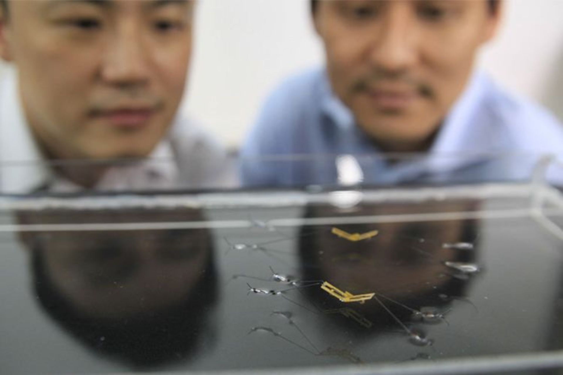 دانشمندان برای درک ساز و کار نشستن و پرش حشرات، به فیلمبرداری و مطالعهی تیرهای از بندپایان پرداختهاند که دراصلاح به آنها آب پیمایان اطلاق میشود. جی سونگ کوه به همراه همکارانش در دانشگاه ملی سئول با فیلمبرداری از این حشرات به مطالعه دقیق حرکات و ارگونومی بدن این موجودات پرداختهاند که نتیجهی آن ساخت روباتی است که قادر است همین با انجام حرکات مشابه روی آب بصورت معلق قرار گرفته و همچنین با تغییر حالت بدون غرق شدن در آب به سمت بالا پرش کند.