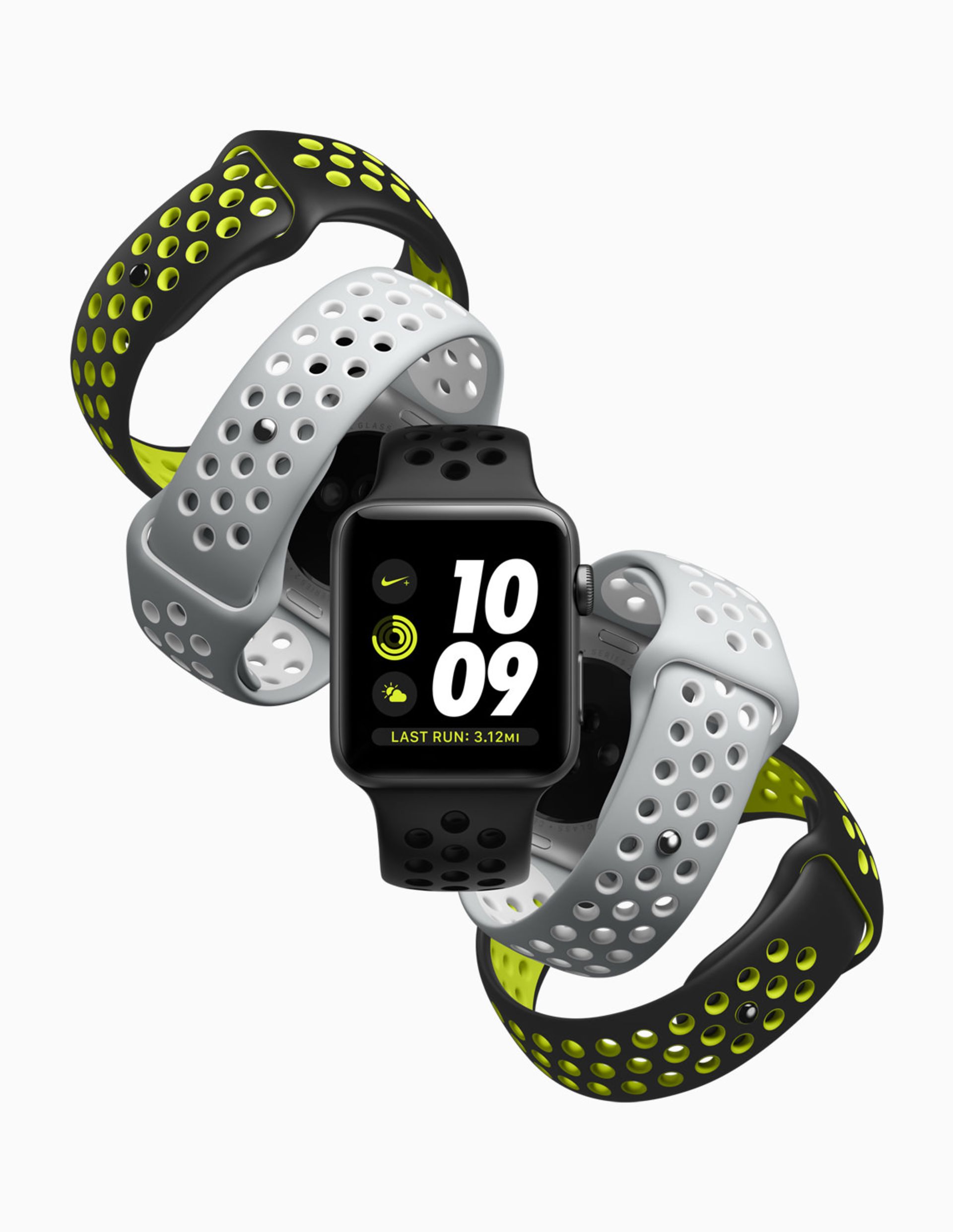 همچنین مدلهای اپل واچ نایک پلاس جدید دارای دو کیس ۳۸ میلیمتری و ۴۲ میلیمتری خاکستری فضایی آلومینیومی هستند که با بند ورزشی ذغالی-سیاه عرضه میشود و کیس آلومینیومی ۳۸ میلیمتری و ۴۲ میلیمتری نقرهای که با رنگ پلاتین خالص-سفید عرضه میشود. بند جدید هِرمِس هم برای اپل واچ عرضه شده است که شامل بند دوتایی ۳۸ میلیمتری چرم آبی زنگاری، بند تکی ۳۸ میلیمتری چرم قهوهای روشن با سگک دوتایی، بند تکی ۴۲ میلیمتری چرم سبز لیمویی و بند تکی ۴۲ میلیمتری چرم سبز مایل به آبی است.