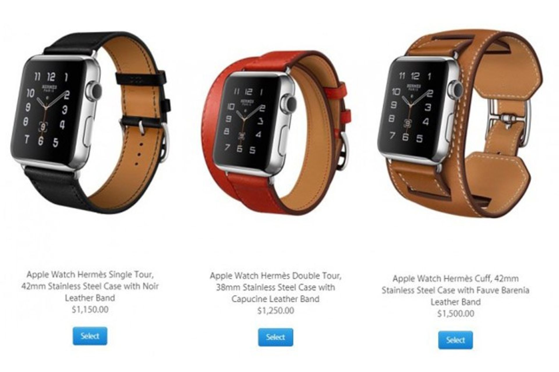 اپل بندهای موسوم به اپل واچ هرمس را که پیش از این در شمار محدودی از فروشگاههای این کمپانی در اختیار علاقمندان قرار گرفته بود، هم اکنون برای تمام کاربران و علاقمندانی که ساعت هوشمند اپل را در اختیار دارند، عرضه کرده است. کاربران میتوانند با مراجعه به فروشگاه آنلاین اپل، هفت مدل از ده مدل عرضه شده از این بندها را که مبتنی بر نسخهی ۳۸ میلی متری اپل واچ است، خریداری کنند. از جملهی بندهای عرضه شده برای این ساعتهای هوشمند باید به مدل موسوم به Double Tour اشاره کرد که تنها برای مدل ۳۸ میلی متری روانهی بازار شده و قیمت آن نیز ۱۲۵۰ دلار است. مدل موسوم به Double Tour در واقع نسخهای است که بند دو بار به دور مچ قرار میگیرد.