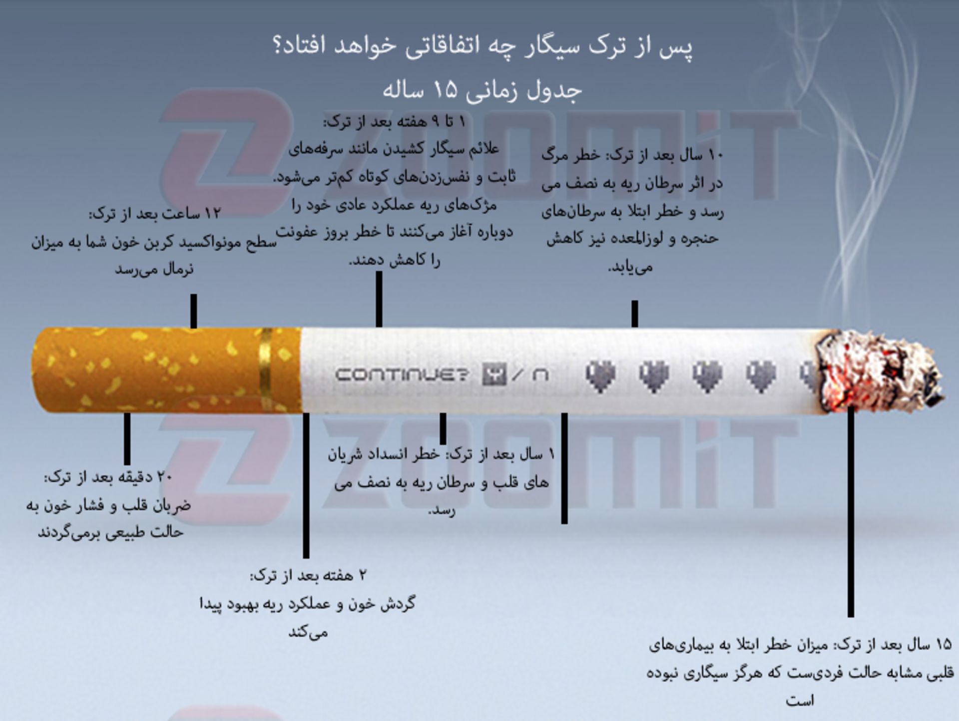 اینفوگرافیک: بعد از ترک سیگار چه اتفاقاتی در بدن خواهد افتاد؟