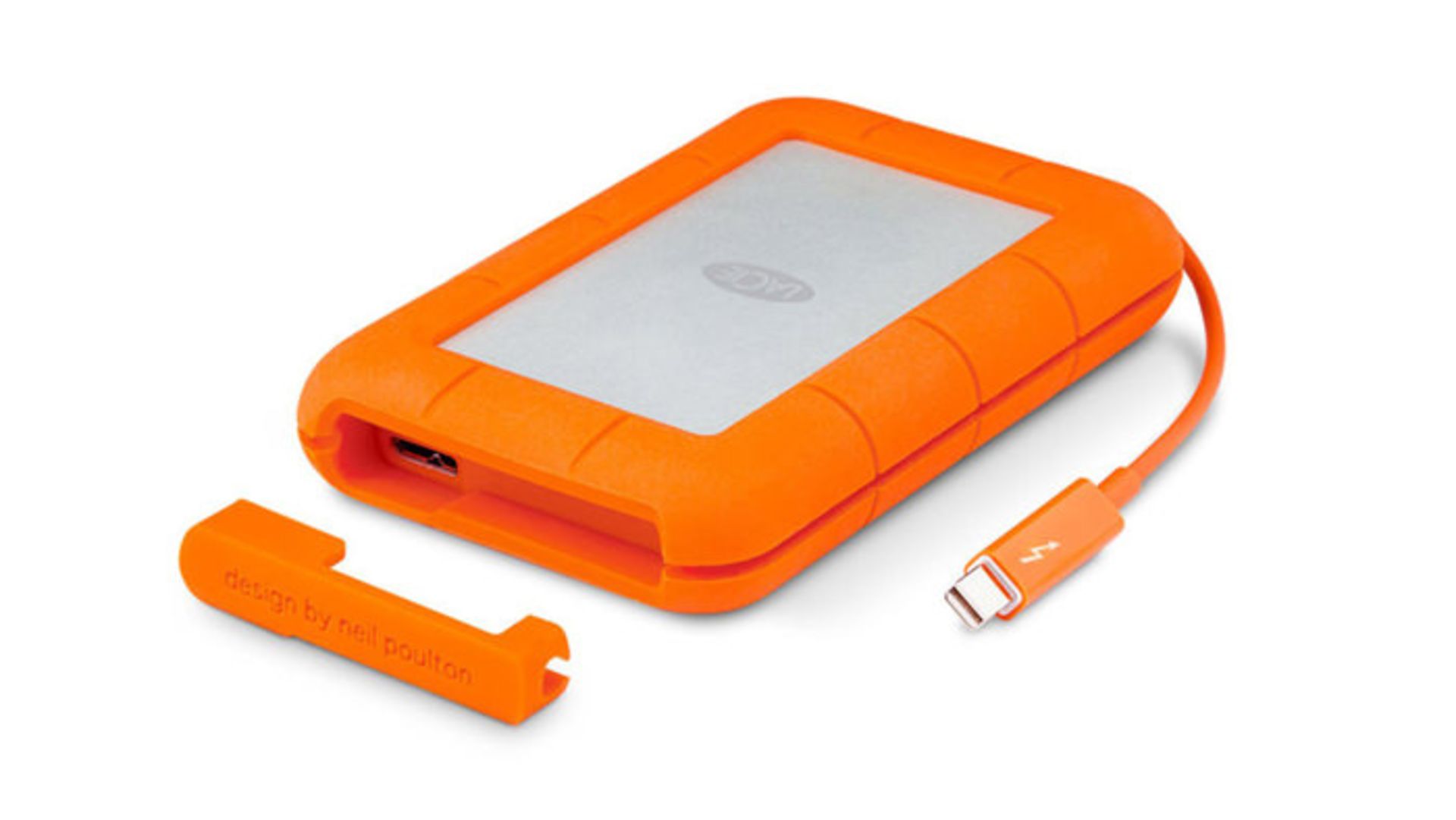 کاربران مکبوکهای اپل که معمولا در سفر به سر میبرند به یک اساسدی اکسترنال نیاز دارند که از پورت تاندربولت نیز پشتیبانی کند. LaCie محصولی به نام Rugged Thunderbolt SSD تولید کرده که به لطف کابل تاندربولت داخل آن میتوانید اطلاعات خود را با حداکثر سرعت ممکن انتقال دهید. این حافظه از رمزگذاری ۲۵۶ بیتی پشتیبانی کرده و ضد شوک، ضد آب و ضد گرد و غبار است. اما همه چیز به مشخصات فنی این حافظهی خارجی ختم نمیشود و محصول LaCie از یک طراحی جذاب و زیبا بهره میبرد. اما برای خرید این اساسدی باید ۹۰۰ دلار بپردازید که به نظر ارزشش دارد.
