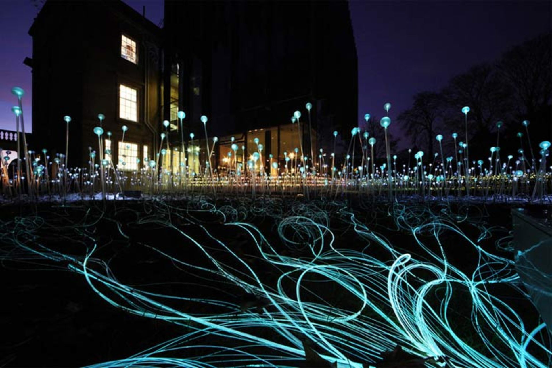 او در ادامهی انجام آخرین پروژهی خود که به نام "مزارع نورانی" از آن یاد میکند، نقطهای دورافتاده در استرالیا را به عنوان بوم نقاشی خود انتخاب کرده و با استفاده از ۵۰ هزار لامپ، چشماندازی دلفریب و تماشایی ایجاد کرده است. البته این لامپهای خاص، شکل و ظاهری ویژه دارند. ساقهای که در رأس آن یک گوی شیشهای قرار گرفته و هنگام روشن شدن، نمایی شبیه به گلهای رنگارنگ و نورانی از خود نشان میدهد. این گلهای شیشهای این بار زمینی به ابعاد چهار زمین فوتبال را تحت سیطرهی خود در آورده و شب هنگام منظرهای سورئال و خیالانگیز را بازتاب میدهند.
