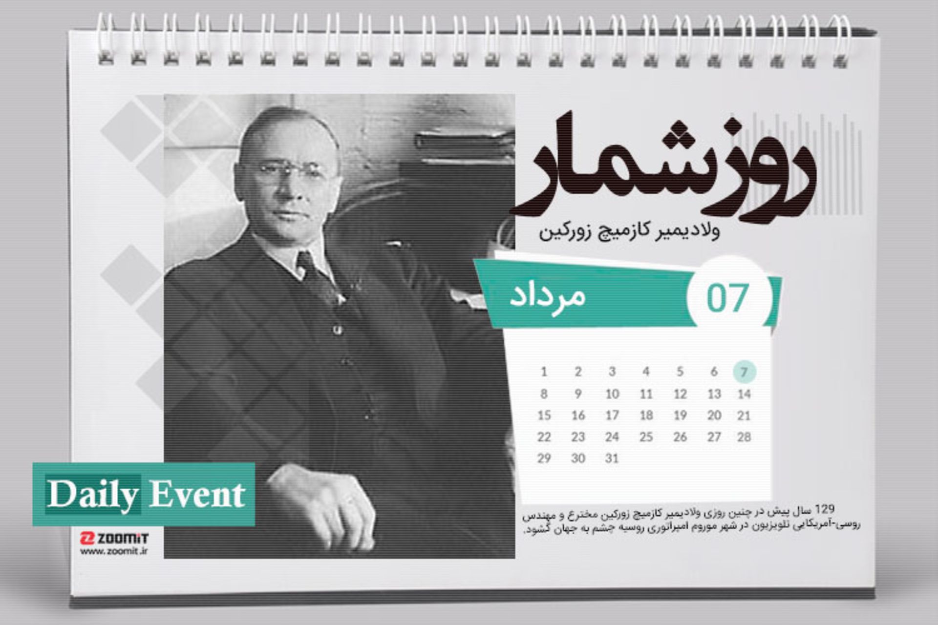 ۷ مرداد: زادروز و سالگرد درگذشت ولادیمیر کازمیچ زورکین یکی از پیشگامان صنعت تلویزیون