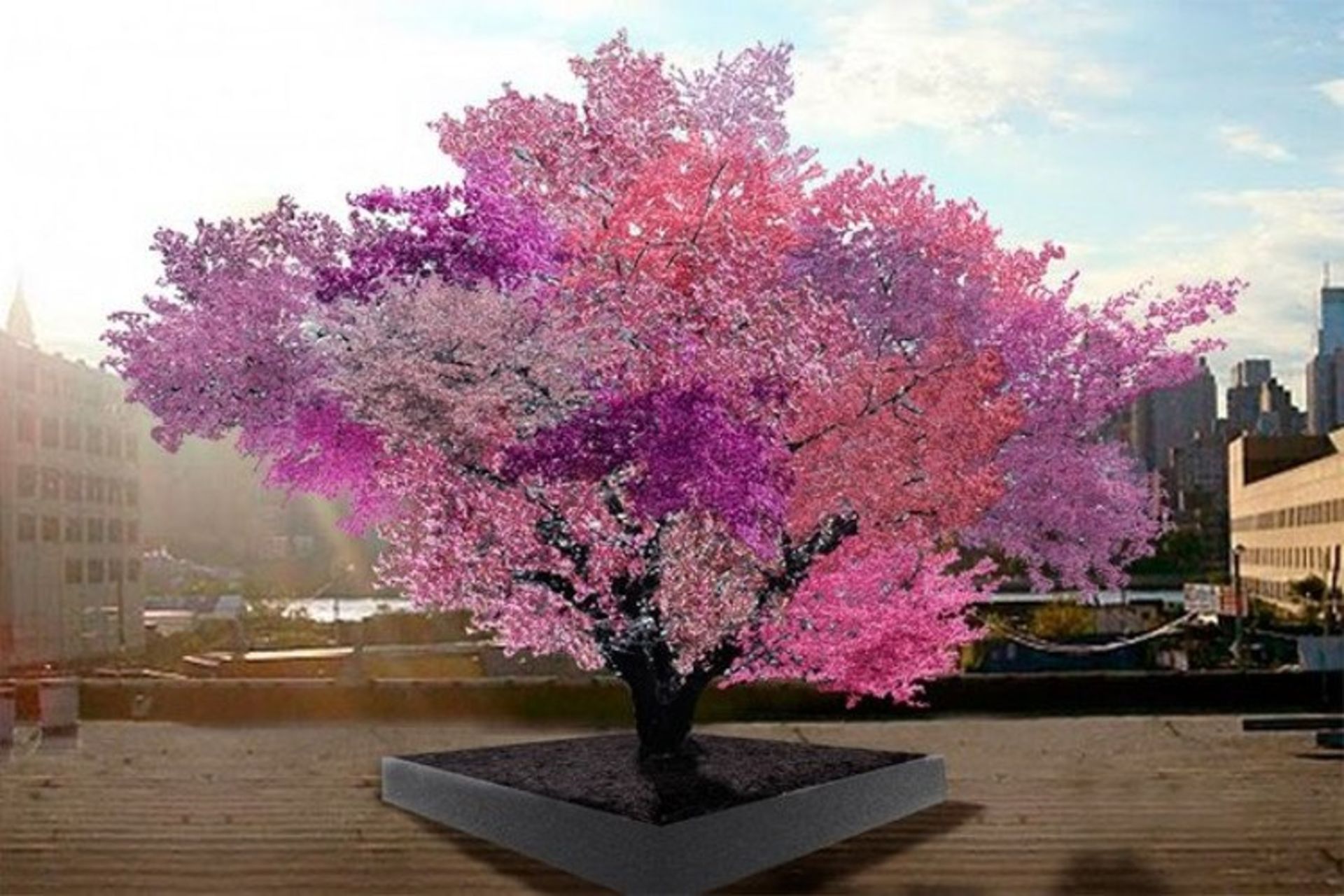 این درخت ۴۰ میوه، در ابتدای بهار شروع به شکوفه زدن میکند و به همین صورت تا پایان ماه با فر رسیدن موعد شکوفه دادن هر یک از شاخهها، رنگهای زیبایی بدان افزون میگردد. با فرا رسیدن تابستان، تمام این شکوفهها به مرور تبدیل به میوه میشوند که گونههای مختلفی از گیلاس، هلو و شلیل، آلو و زردآلو را در بر میگیرد.