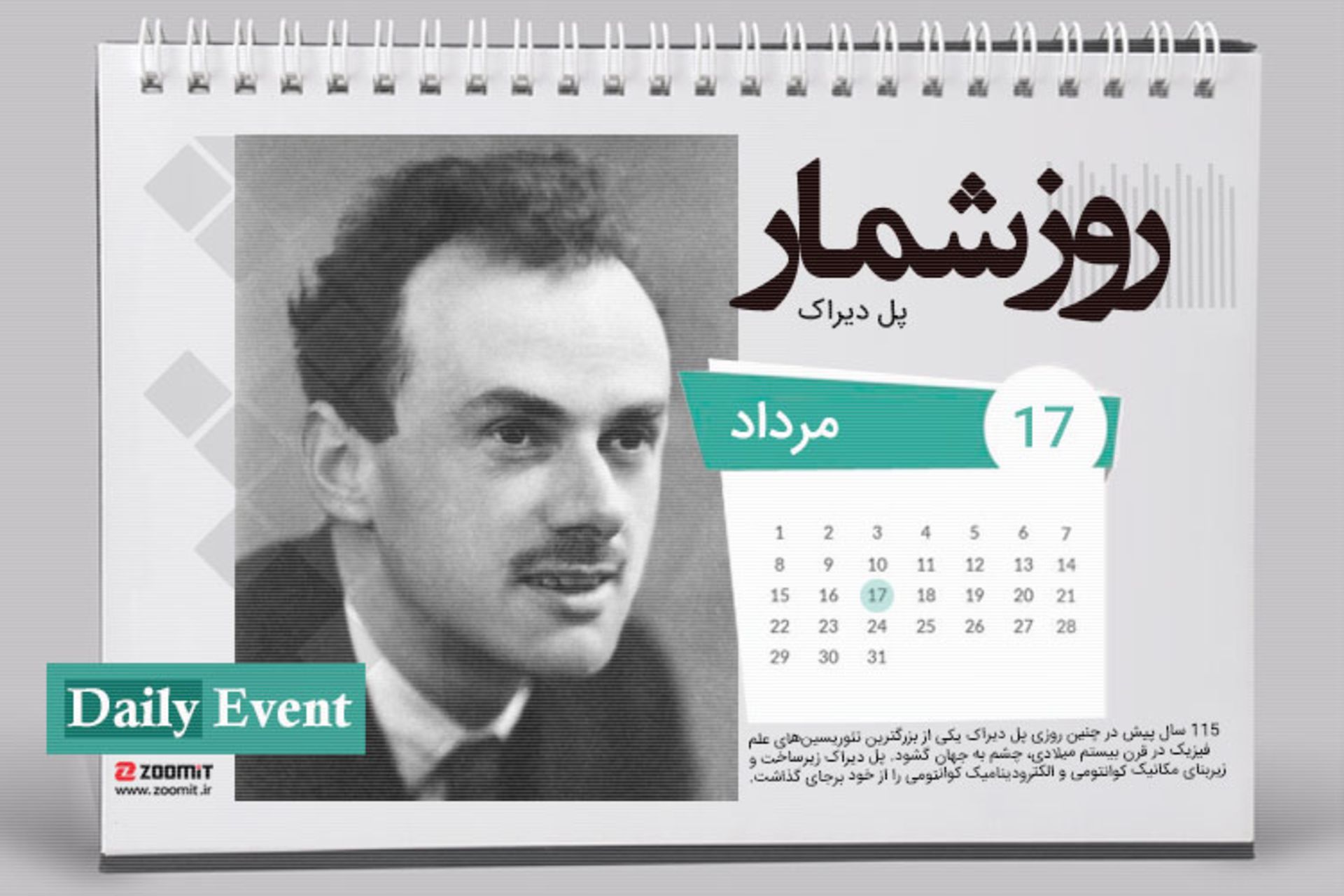 ۱۱۵ سال پیش در چنین روزی (۸ آگوست ۱۹۰۲)، پل آدرین موریس دیراک، فیزیکدان برجستهی انگلیسی و تئوریسین بزرگ علم فیزیک به دنیا آمد. در کنار علم فیزیک، پل دیراک یک ریاضیدان برجسته بود. وی کرسی استادی لوکاسی ریاضی را در دانشگاه کمبریج تا سال ۱۹۶۹ و زمان بازنشستگیاش در اختیار داشت.